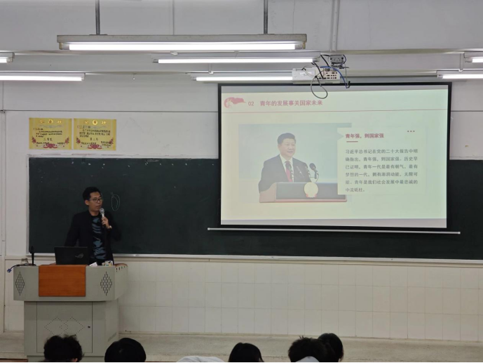 接著講到青年的發(fā)展對國家未來的重要性,黨和人民事業(yè)發(fā)展離不開一代又一代有志青年的拼搏奉獻,借此激勵同學(xué)們,作為新時代的青年要有理想主義的追求、要有擔(dān)當(dāng)和闖勁、要有敢于吃苦耐勞的精神,要有團結(jié)奮斗的品質(zhì)。