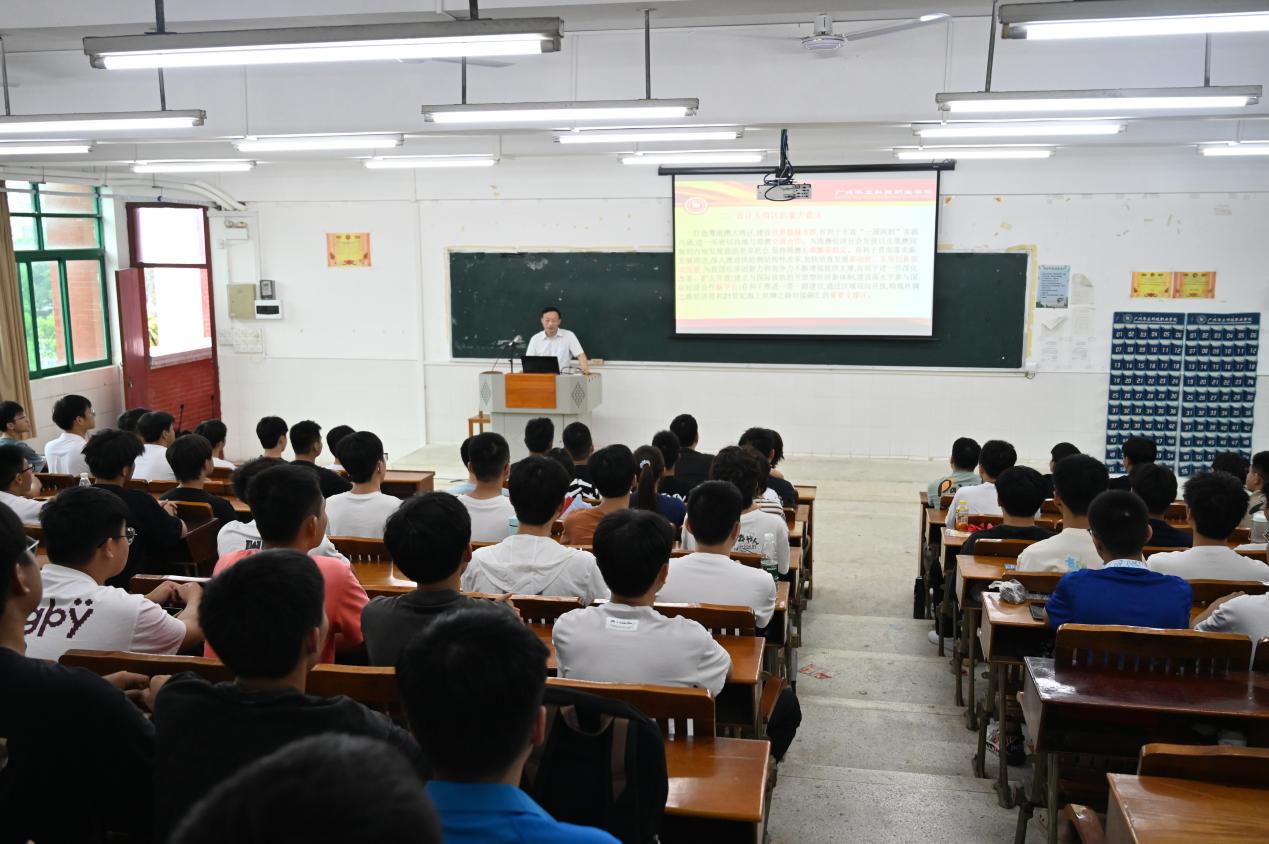 2023年9月8日上午于圖書(shū)館401教室,電力與智能制造學(xué)院院長(zhǎng)王秀敏以“學(xué)習(xí)貫徹黨的二十大精神,堅(jiān)持專業(yè)群對(duì)接產(chǎn)業(yè)推動(dòng)大灣區(qū)智能制造高質(zhì)量發(fā)展”為主題,為2023級(jí)新生講授了思政第一課。