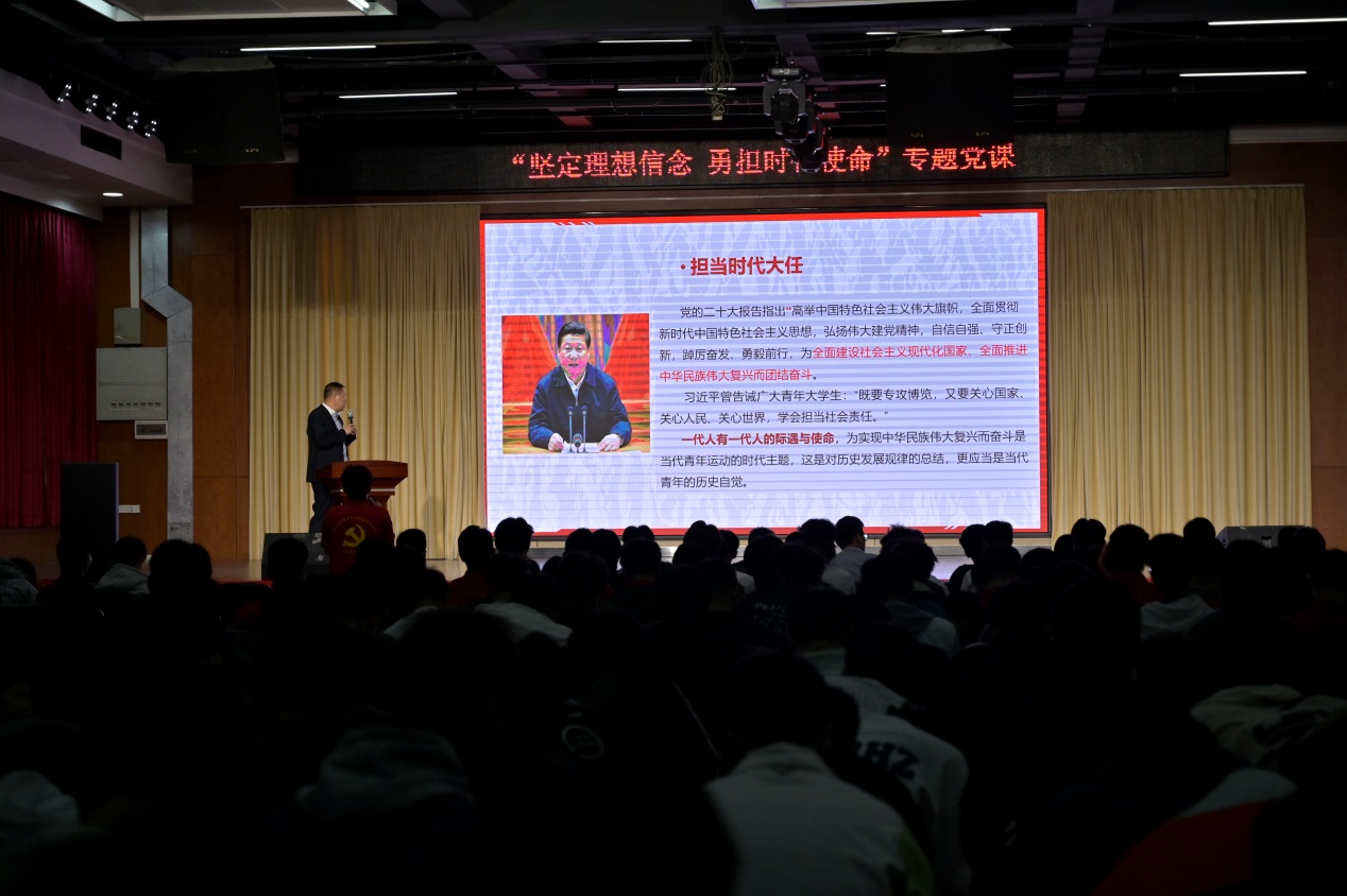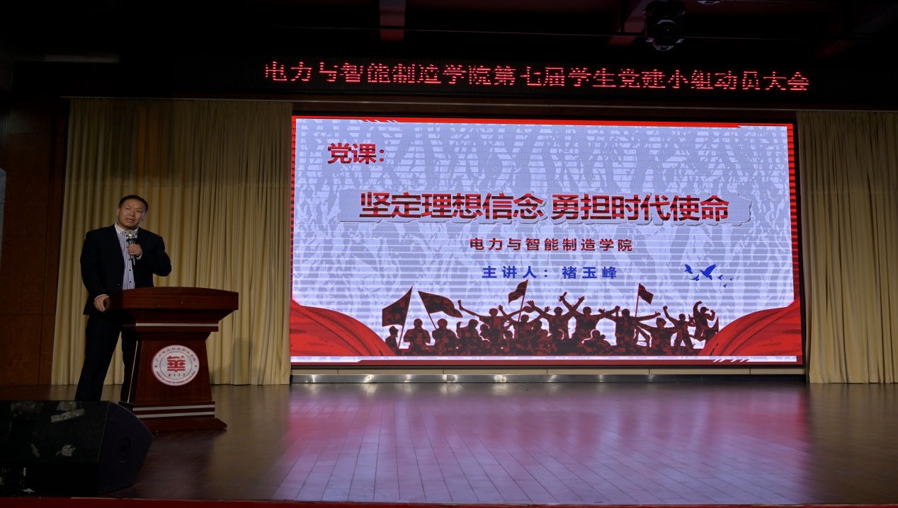 電力與智能制造學(xué)院黨總支,為了對(duì)遞交入黨申請(qǐng)書的同學(xué)進(jìn)行共產(chǎn)黨主義理想信念教育,使同學(xué)們端正入黨動(dòng)機(jī)、明確努力方向。11月16日在圖書館8樓,學(xué)院黨總支書記褚玉峰給全院300多名遞交入黨申請(qǐng)書的同學(xué),上了一堂題目為“堅(jiān)定理想信念,勇?lián)鷷r(shí)代使命”黨課。