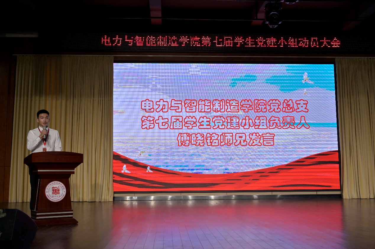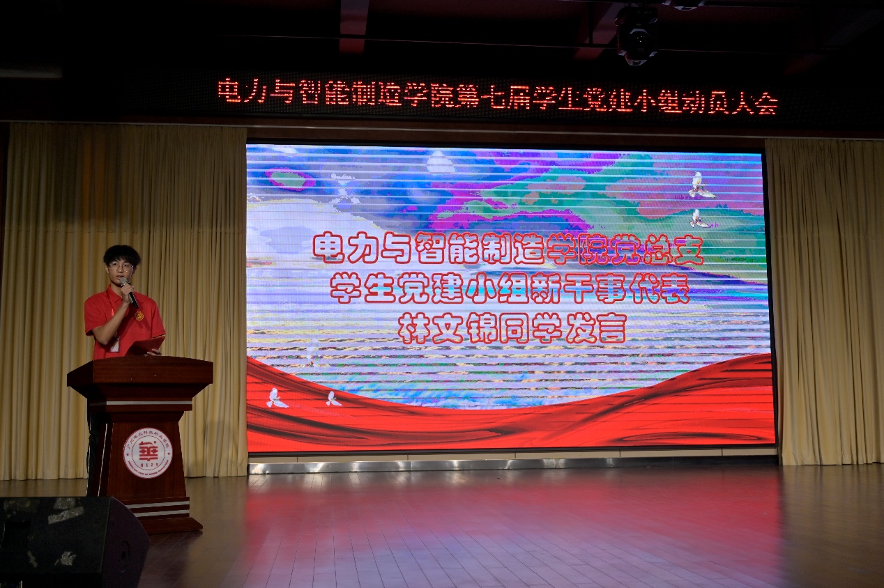 電力與智能制造學(xué)院黨總支第七屆學(xué)生黨建小組總負(fù)責(zé)人傅曉銘師兄、以及第七屆學(xué)生黨建小組新干事代表林文錦同學(xué)二人進(jìn)行發(fā)言。