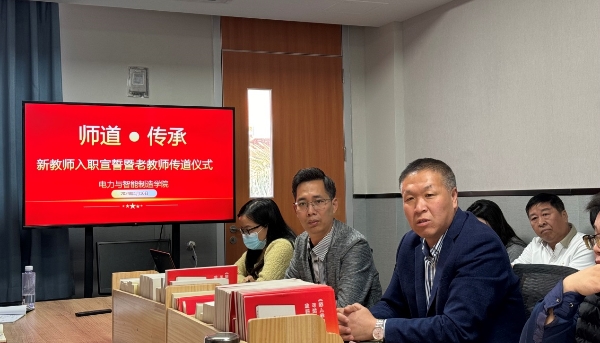 為加強師德師風建設,增強教師職業(yè)的榮譽感、使命感和當教師的儀式感,1月16日電力與智能制造學院黨總支在西1-509A會議室,舉行了“師道﹒傳承”——新教師入職宣誓暨老教師傳道儀式。此次活動得到了學校人事處的重視,人事處處長鐘文浩帶領廖玲彬科長、歐陽偉籌科長出席了會議,會議由電力學院副院長孫令真主持。