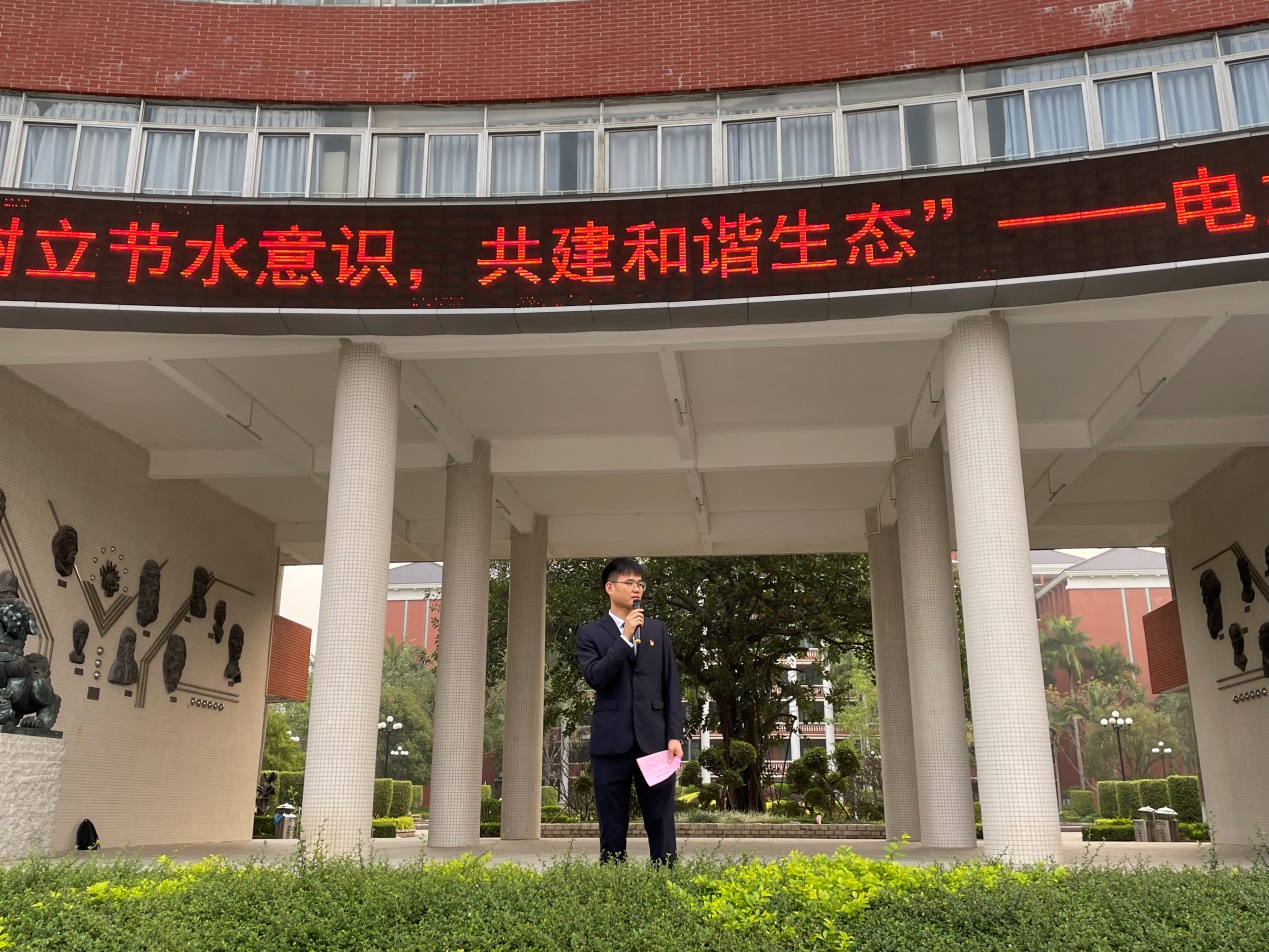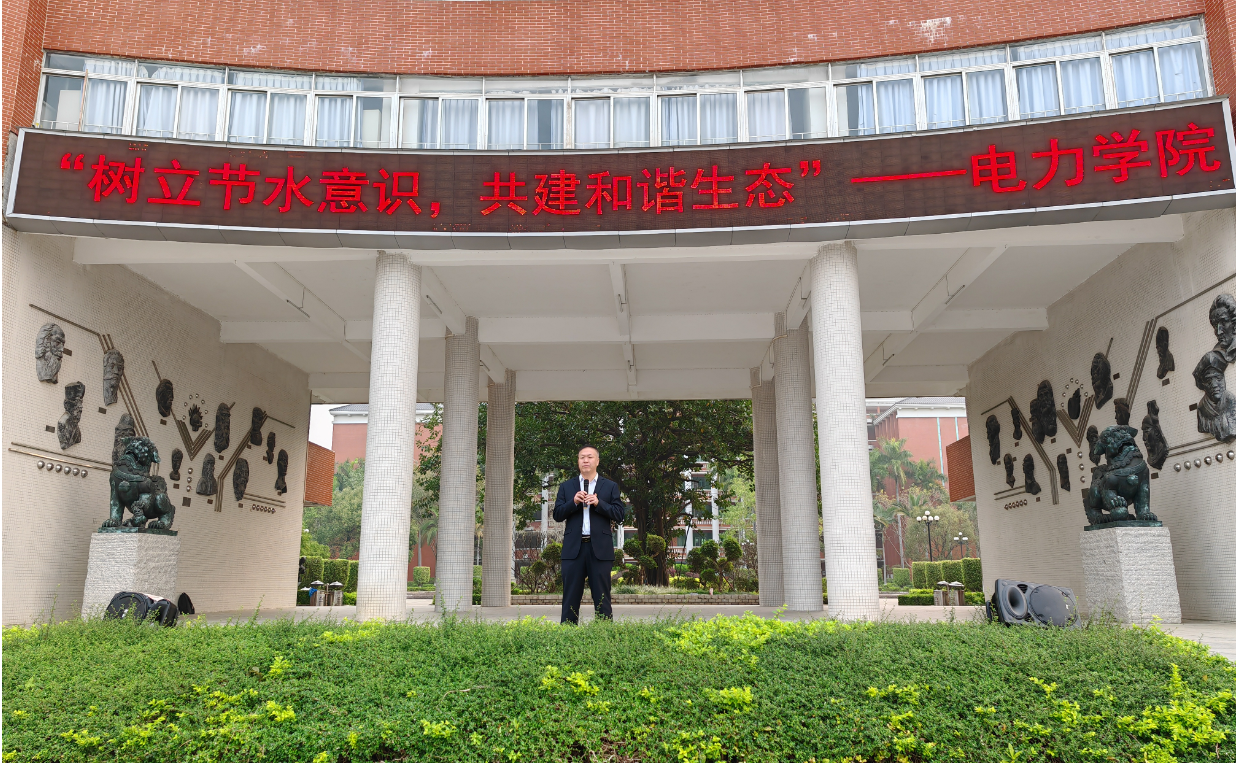 升國(guó)旗儀式結(jié)束,電力與智能制造學(xué)院黨總支書(shū)記、院長(zhǎng)褚玉峰教授做了題目為“樹(shù)立節(jié)水意識(shí),共建和諧生態(tài)”的國(guó)旗下講話。