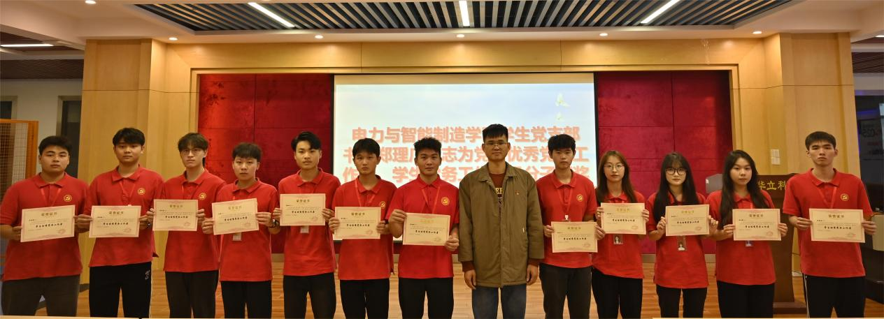 第二項(xiàng)議程,宣布電力與智能制造學(xué)院黨總支學(xué)生黨建小組學(xué)生黨務(wù)優(yōu)秀工作者、學(xué)生黨務(wù)積極分子名單。學(xué)院黨總支專(zhuān)職副書(shū)記鄭理廣同志、學(xué)生黨建小組指導(dǎo)老師賴(lài)錦康同志為學(xué)生黨務(wù)優(yōu)秀工作者、學(xué)生黨務(wù)積極分子頒獎(jiǎng)。