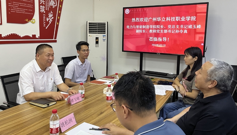 電力與智能制造學(xué)院黨總支為了做好樣板黨支部的創(chuàng)建工作,5月7日,學(xué)院黨總支書記褚玉峰、教師黨支部書記孫令真去到廣東省第四批高校樣板黨支部——廣州華商職業(yè)學(xué)院智能工程學(xué)院教師黨支部考察學(xué)習(xí)。廣州華商職業(yè)學(xué)院智能工程學(xué)院院長黃河、黨總支書記姚柏洲、教師黨支部副書記張蒙莉熱情接待了我院領(lǐng)導(dǎo)。