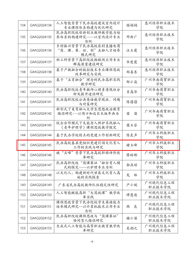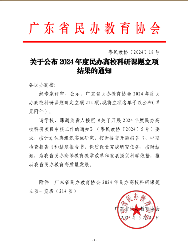 近日,廣東省民辦教育協(xié)會公布了《2024年度民辦高??蒲姓n題立項(xiàng)結(jié)果的通知》,我院申報(bào)的“民辦高校基層黨組織以黨建引領(lǐng)文化育人工作的實(shí)踐與研究”項(xiàng)目成功立項(xiàng)。