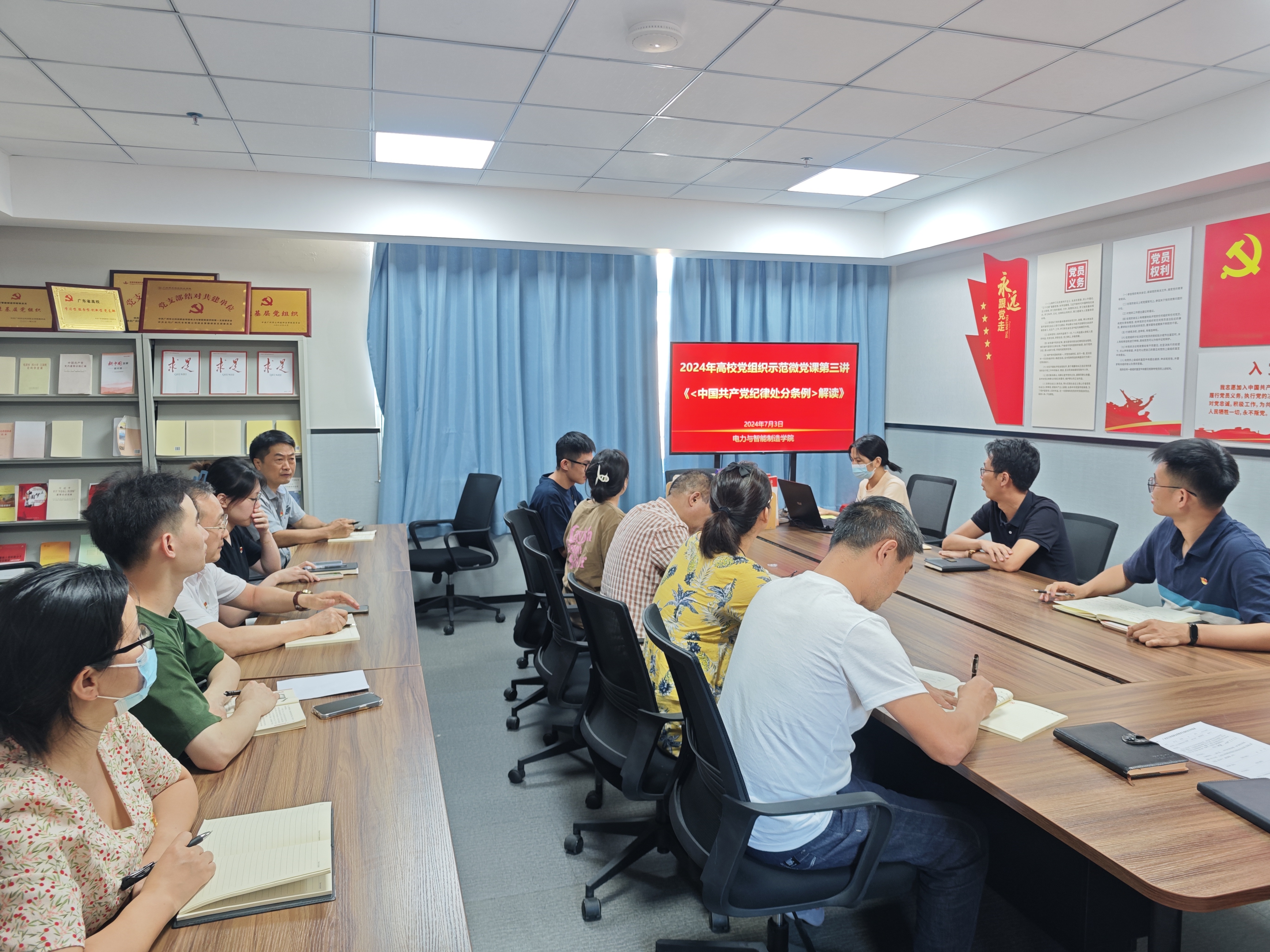 7月3日下午,電力與智能制造學(xué)院黨總支教師黨支部在西1-514會(huì)議室組織黨員學(xué)習(xí)觀看2024年高校黨組織示范微黨課第三講《<中國共產(chǎn)黨紀(jì)律處分條例>解讀》。教師黨支部全體黨員參加了會(huì)議,會(huì)議由教師黨支部孫令真書記主持。