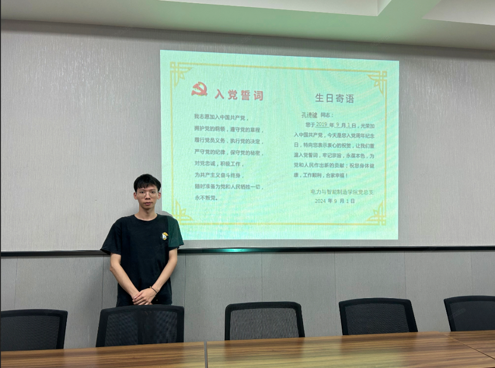 作為電力與智能制造學(xué)院云浮校區(qū)的一名教師黨員孔德鍵,在收到學(xué)院黨組織發(fā)來的“政治生日”賀卡后心情特別興奮,也感謝組織的關(guān)懷。9月1日,是我的政治生日,我認(rèn)為政治生日是表達(dá)對黨的忠誠和堅定的重要時刻?;鸺t的黨旗永遠(yuǎn)飄揚在我心中,莊嚴(yán)的入黨誓詞永遠(yuǎn)融入我靈魂深處,它已轉(zhuǎn)化成我行動的力量,使我以堅強(qiáng)的黨員意志投入到黨的工作中,甘于拼搏奉獻(xiàn)。
