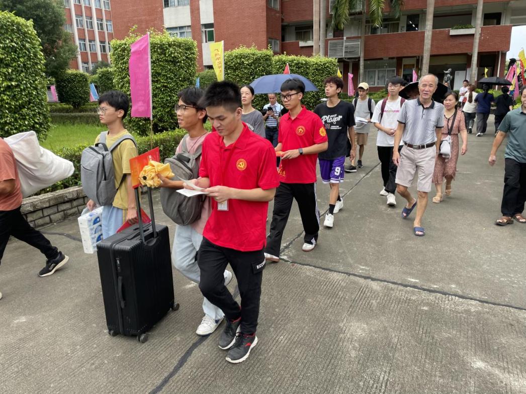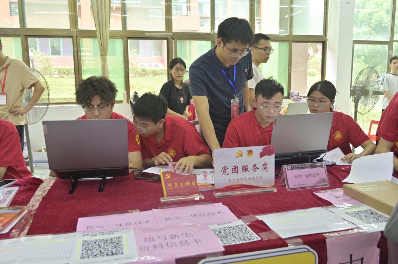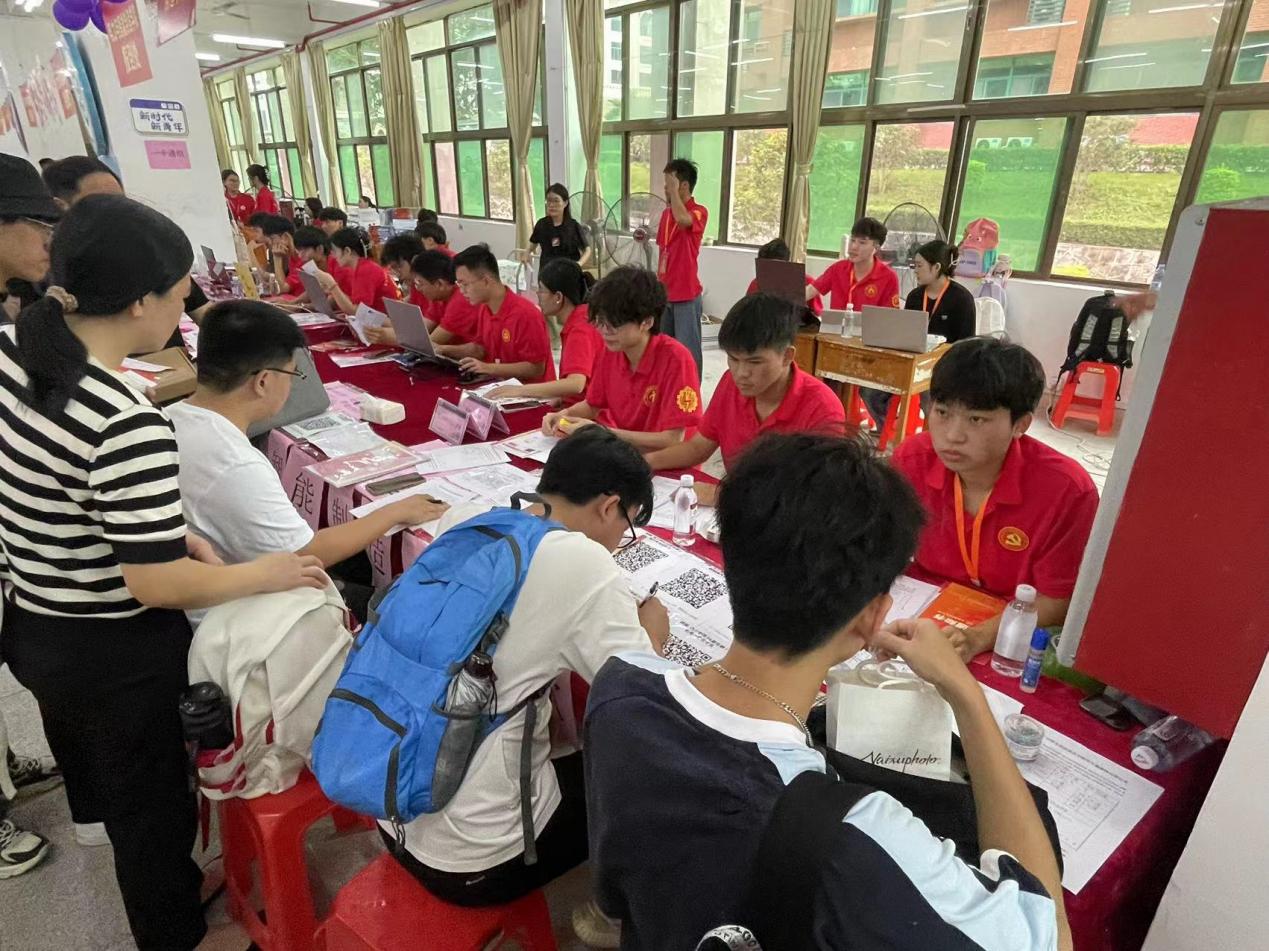 “黨建紅”成為了迎新現(xiàn)場(chǎng)最鮮明的顏色,學(xué)院黨總支在新同學(xué)入學(xué)的第一天將黨建文化融入了志愿服務(wù)中,在萌新們的心靈里埋了“紅色種子”。