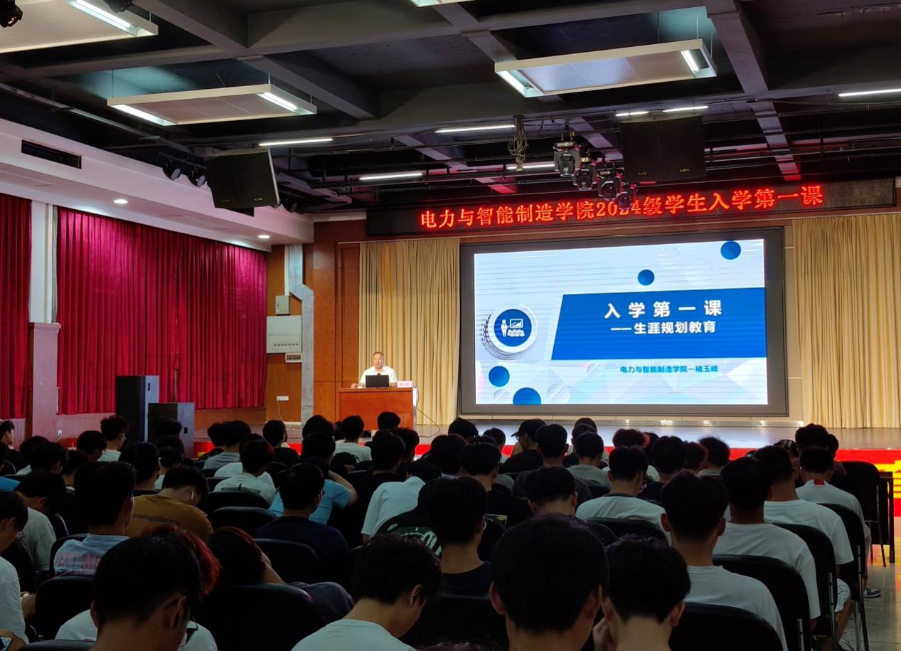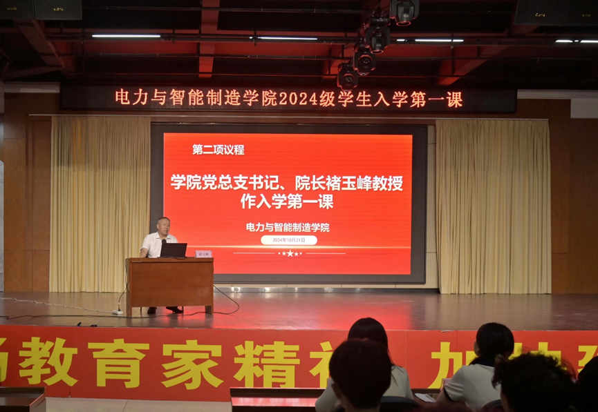 揚(yáng)帆起航,迎接新挑戰(zhàn)。為了幫助新生快速適應(yīng)新環(huán)境、融入大學(xué)生生活,10月21日和10月23日,電力與智能制造學(xué)院黨總支書記、院長褚玉峰給24級全體新生上了入學(xué)教育第一課暨大學(xué)生生涯規(guī)劃教育。會議由林文錦同學(xué)主持,學(xué)院黨總支書記、院長褚玉峰教授,學(xué)院黨總支副書記、學(xué)管副主任鄭理廣老師,學(xué)院團(tuán)委書記鐘穎老師,2024級輔導(dǎo)員及全體2024級新同學(xué)參加了會議。