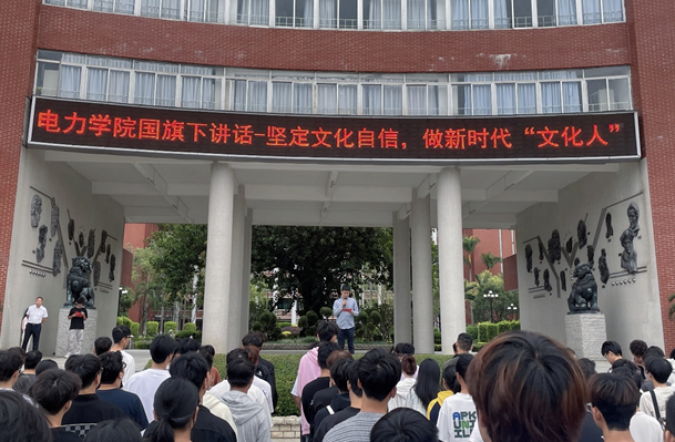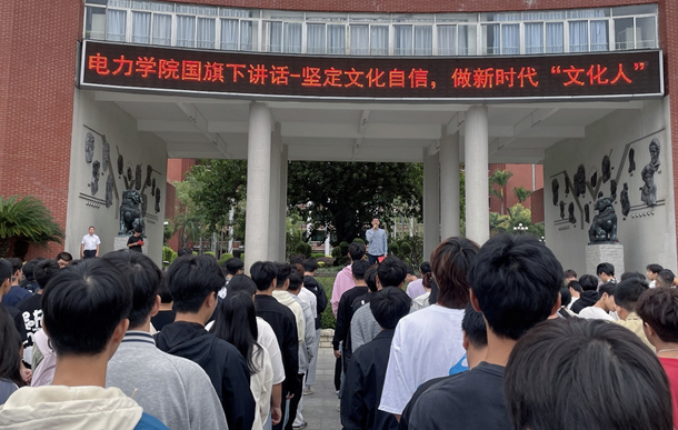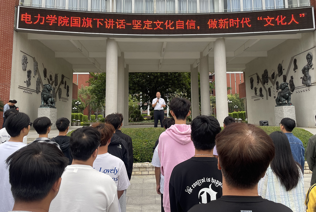 根據(jù)學(xué)校安排,11月4日清晨,電力與智能制造學(xué)院舉行新學(xué)期第一次升國旗儀式,學(xué)院黨總支書記、院長褚玉峰做了主題為:堅(jiān)定文化自信,做新時(shí)代“文化人”的國旗下講話,學(xué)院輔導(dǎo)員及全體同學(xué)參加了這次升國旗儀式。