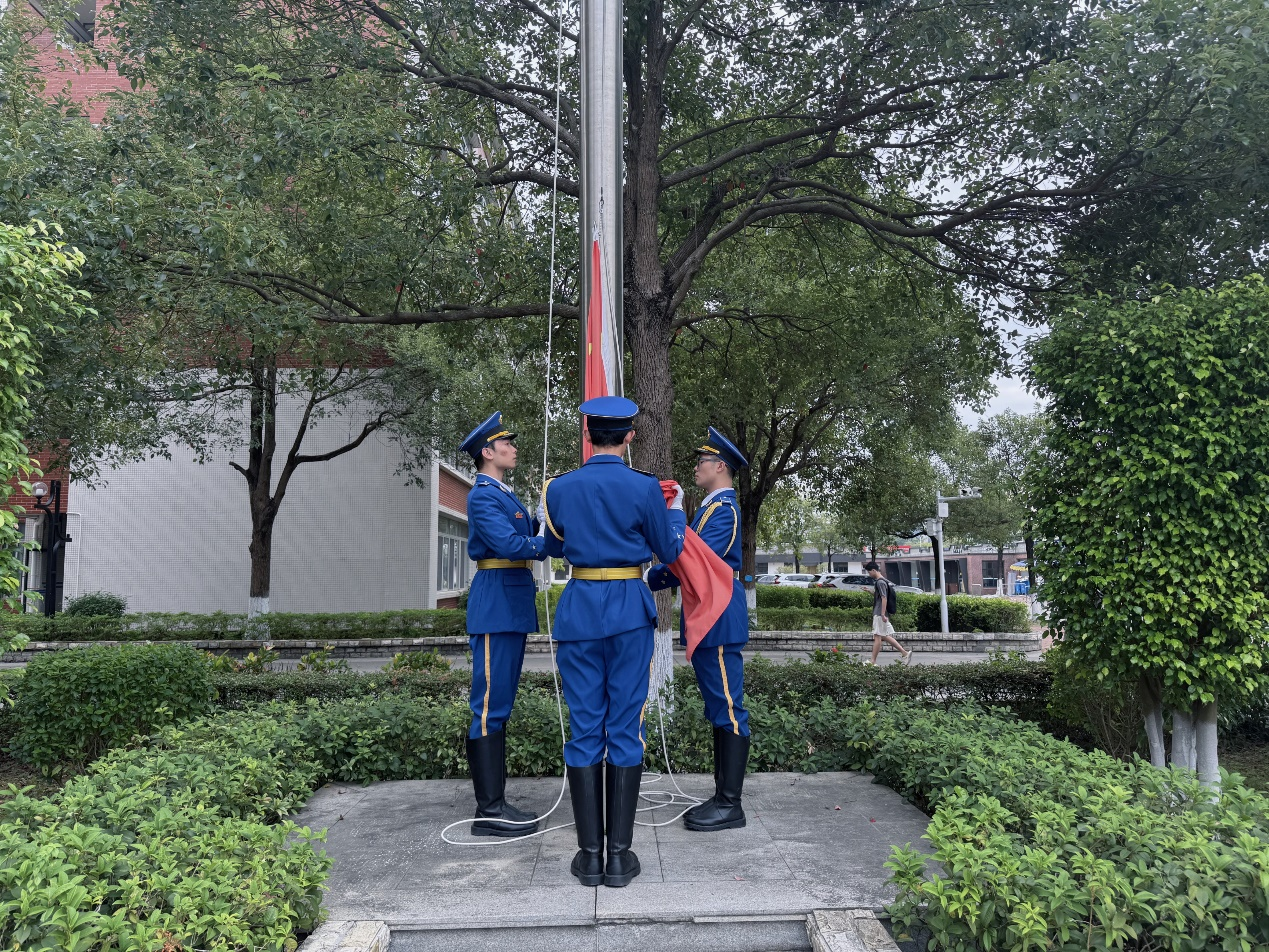 升國旗儀式由學(xué)院黨總支副書記、學(xué)管副主任鄭理廣老師主持。7.30分升國旗儀式正式開始,全體人員面向國旗致敬,行注目禮。