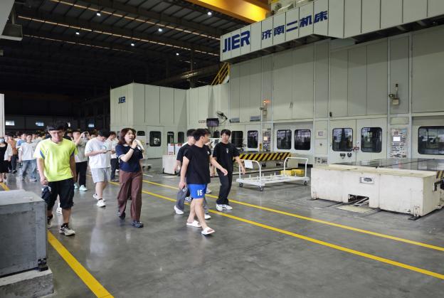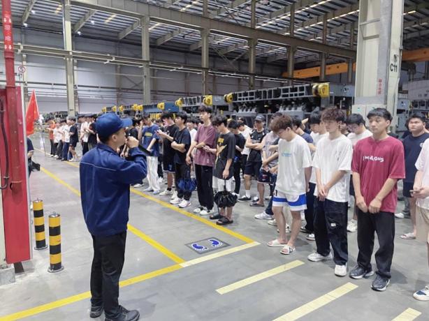 在講解員的引導(dǎo)下,師生們依次走進(jìn)沖壓、焊裝、總裝等工藝車間,了解汽車制造從零部件到整車的全流程。目睹高度自動(dòng)化生產(chǎn)線的機(jī)械韻律,凝視全智能機(jī)器人焊接的火花,駐足嚴(yán)格質(zhì)量保障體系執(zhí)行的現(xiàn)場(chǎng),同學(xué)不僅見證了現(xiàn)代汽車制造的科技實(shí)力,更被“行有道·達(dá)天下”的企業(yè)文化于“奮力拼搏、團(tuán)結(jié)協(xié)作、知難而進(jìn),志在必得”的企業(yè)精深深觸動(dòng)。正是新時(shí)代產(chǎn)業(yè)工人每個(gè)技術(shù)突破的累積,構(gòu)筑起現(xiàn)代化產(chǎn)業(yè)體系的基石;正是每道精益求精的制造工藝,書寫著技能報(bào)國的青春答卷。