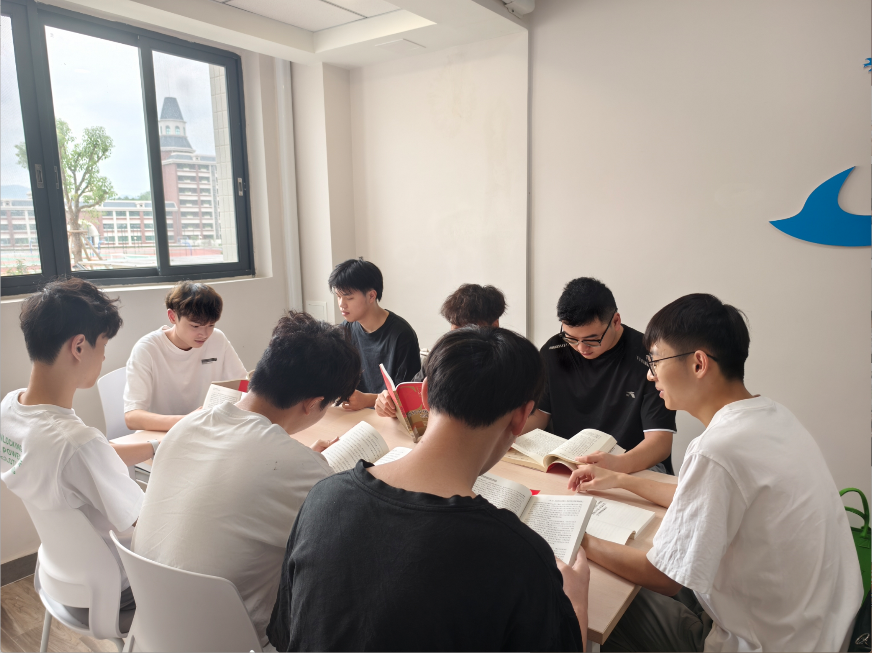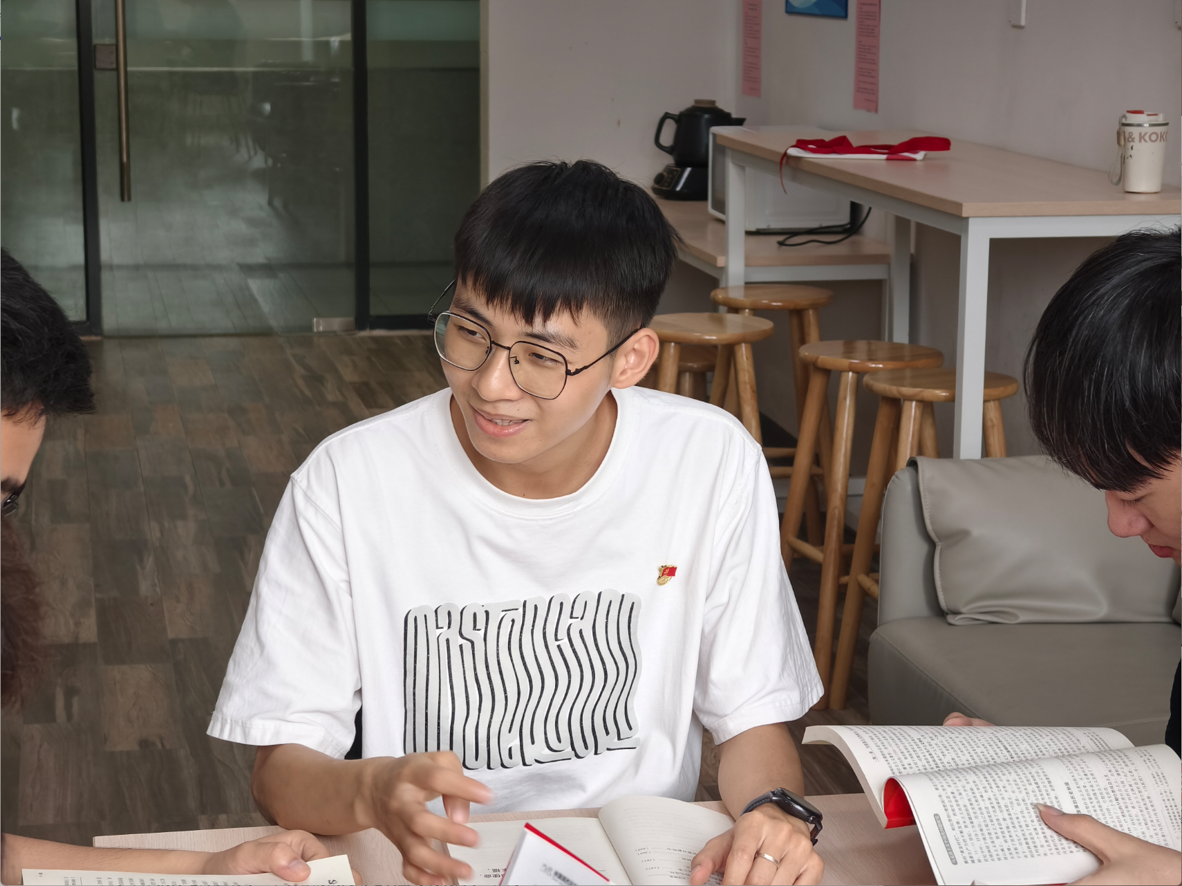 窗外雨聲淅瀝,室內書香氤氳。在學生社區(qū)里一場別開生面的讀書分享會正火熱進行,教師黨員吳世濤帶領著五位學生黨員和積極分子,共同徜徉于知識與信仰的海洋,其中,他作為思想引領者的角色尤為亮眼。