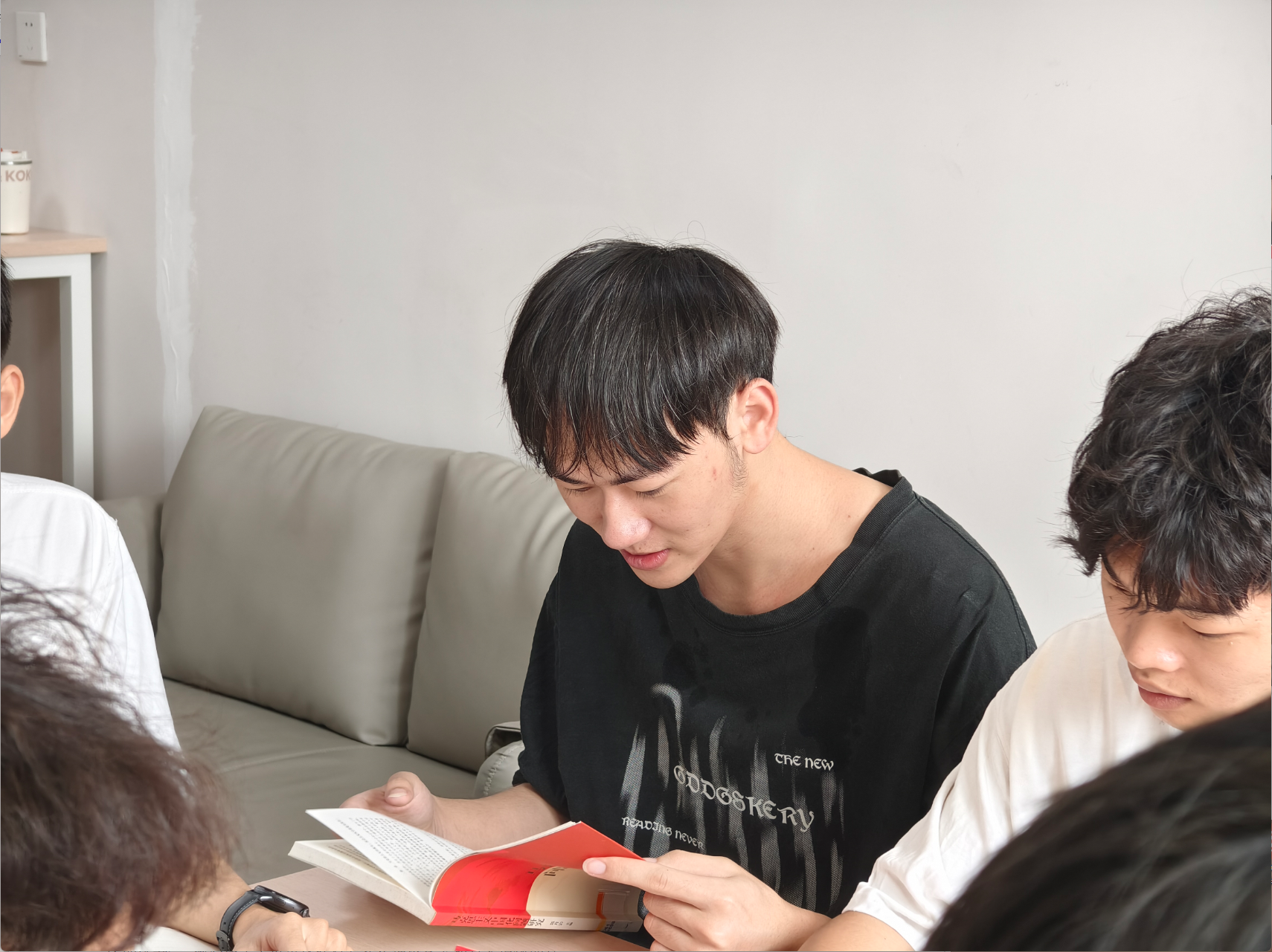當(dāng)謝威談及《當(dāng)代中國(guó)發(fā)展史》中改革開(kāi)放的波瀾壯闊時(shí),吳老師引導(dǎo)大家思考發(fā)展背后的制度力量和領(lǐng)導(dǎo)核心;當(dāng)大一新生楊岱升認(rèn)真解讀《黨的基本知識(shí)》后,吳老師熱情鼓勵(lì)其持續(xù)學(xué)習(xí)、積極向組織靠攏;在謝凱帆探討《20世紀(jì)末國(guó)外馬克思主義綱要》中世界社會(huì)主義思潮的演變后,吳老師適時(shí)引導(dǎo)大家辯證分析中國(guó)化馬克思主義的生命力,理解我們自身道路的獨(dú)特價(jià)值和必然選擇。這種貫穿全程的、互動(dòng)式的思想點(diǎn)撥,讓每一本書的分享都不僅限于知識(shí)傳遞,更成為了黨育人過(guò)程的直觀體現(xiàn)。