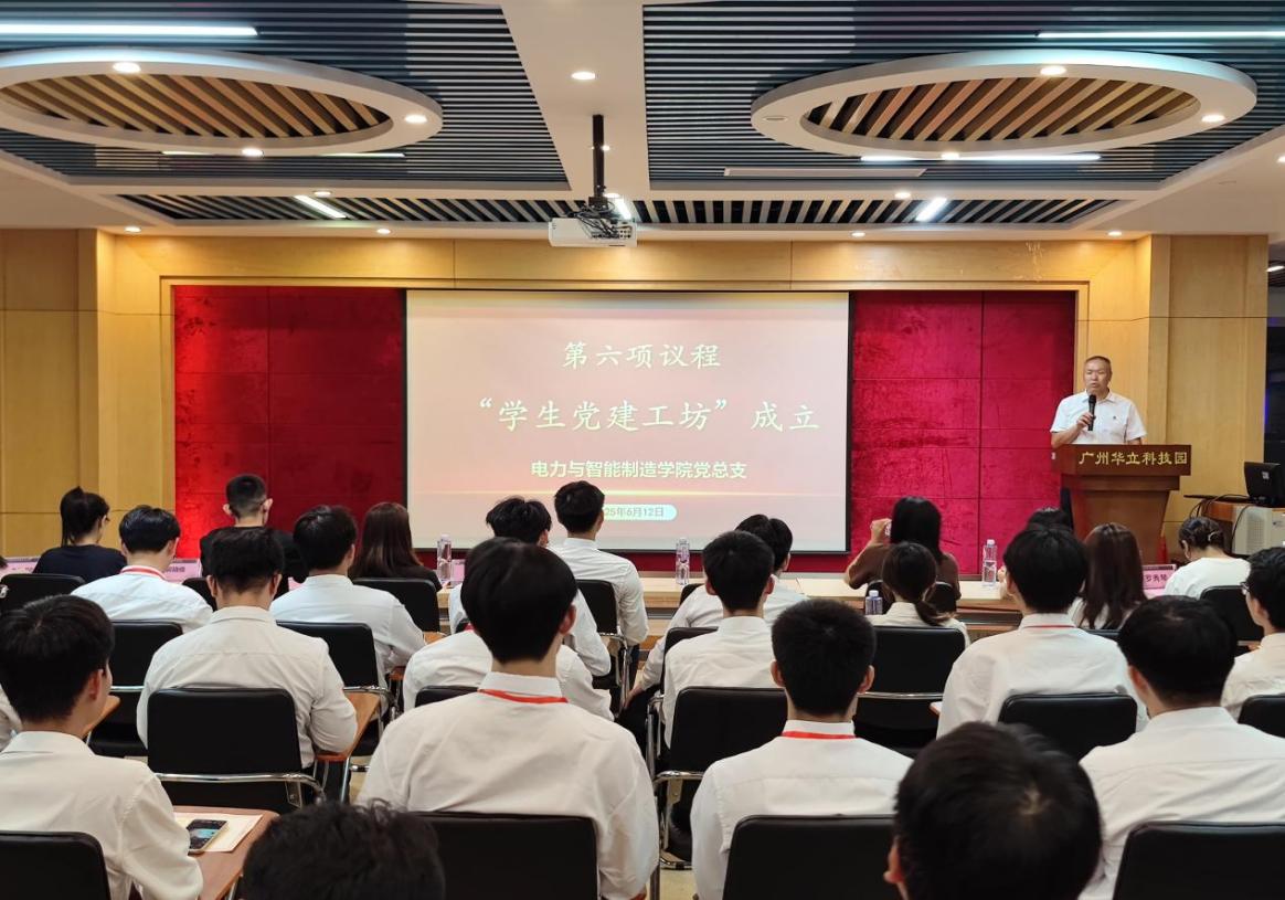 會上,學院黨總支書記褚玉峰教授宣布“學生黨建工坊”成立并致辭,他講到成立“學生黨建工坊”是電力與智能制造學院加強和改進新時代大學生思想政治教育工作,提升學生黨建工作質(zhì)量的重要舉措,是打造學生黨支部特色黨建品牌的需要,對幫助學生黨員和入黨積極分子深入學習黨的創(chuàng)新理論、路線方針政策、黨史國史,深刻理解習近平新時代中國特色社會主義思想具有重要意義。“學生黨建工坊”可以成為連接校內(nèi)思政課教師、黨務工作者、專業(yè)教師、校外專家學者的橋梁,引入更豐富的育人力量;可以發(fā)揮朋輩效應,為學生黨員、入黨積極分子、普通學生之間,提供深入交流空間,分享學習心得、成長困惑、實踐經(jīng)驗,營造濃厚的“儒雅電力人”文化育人氛圍,潛移默化地影響廣大學生。最后,希望我們齊心協(xié)力,把“學生黨建工坊”打造成為我們學院學生黨建工作的“紅色熔爐”和“先鋒營地”。