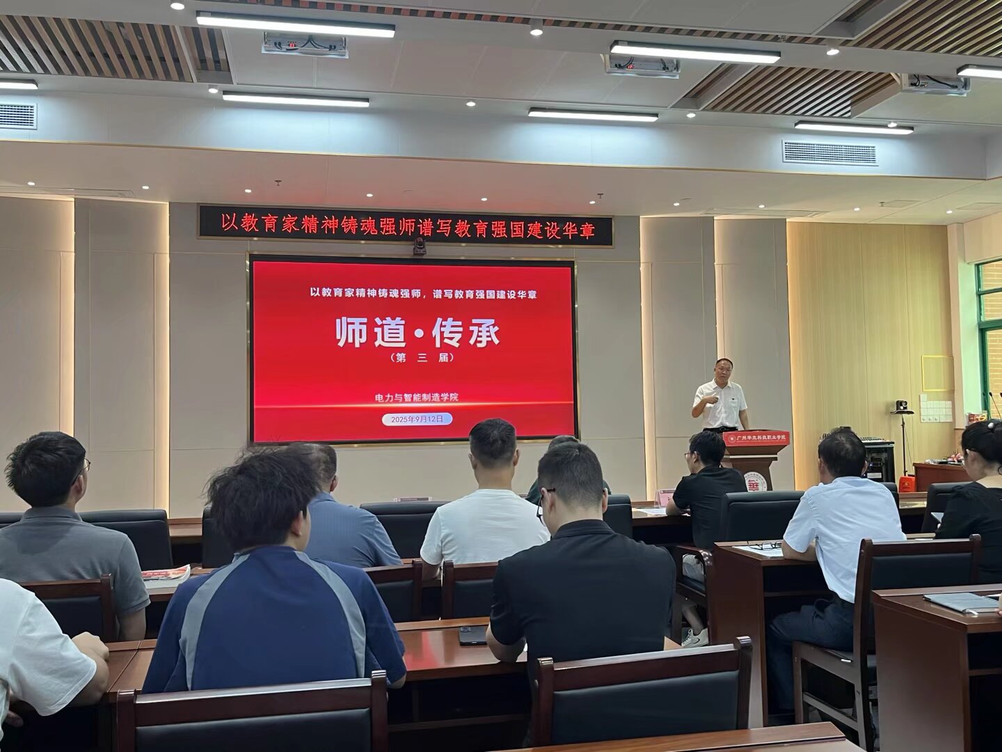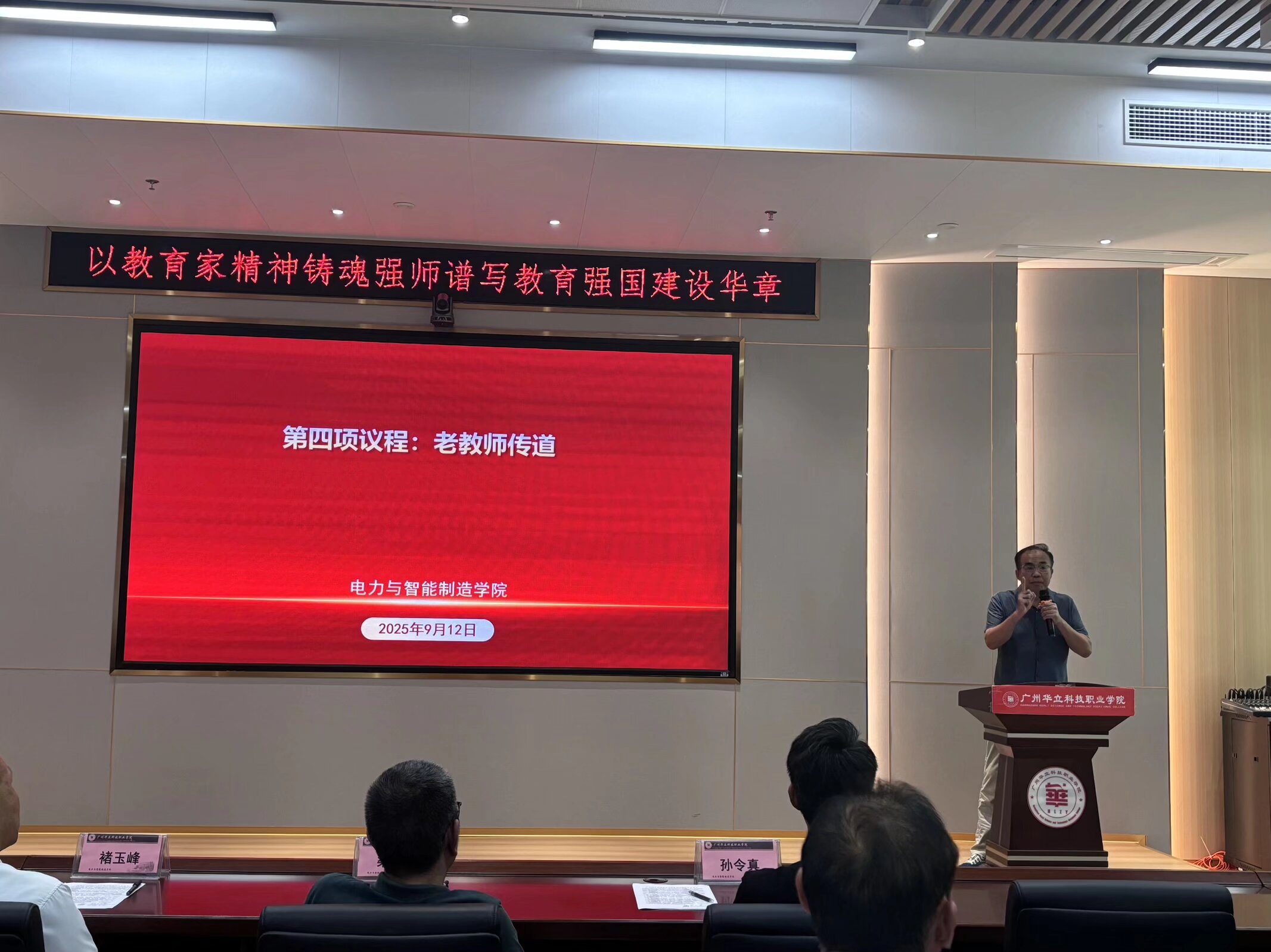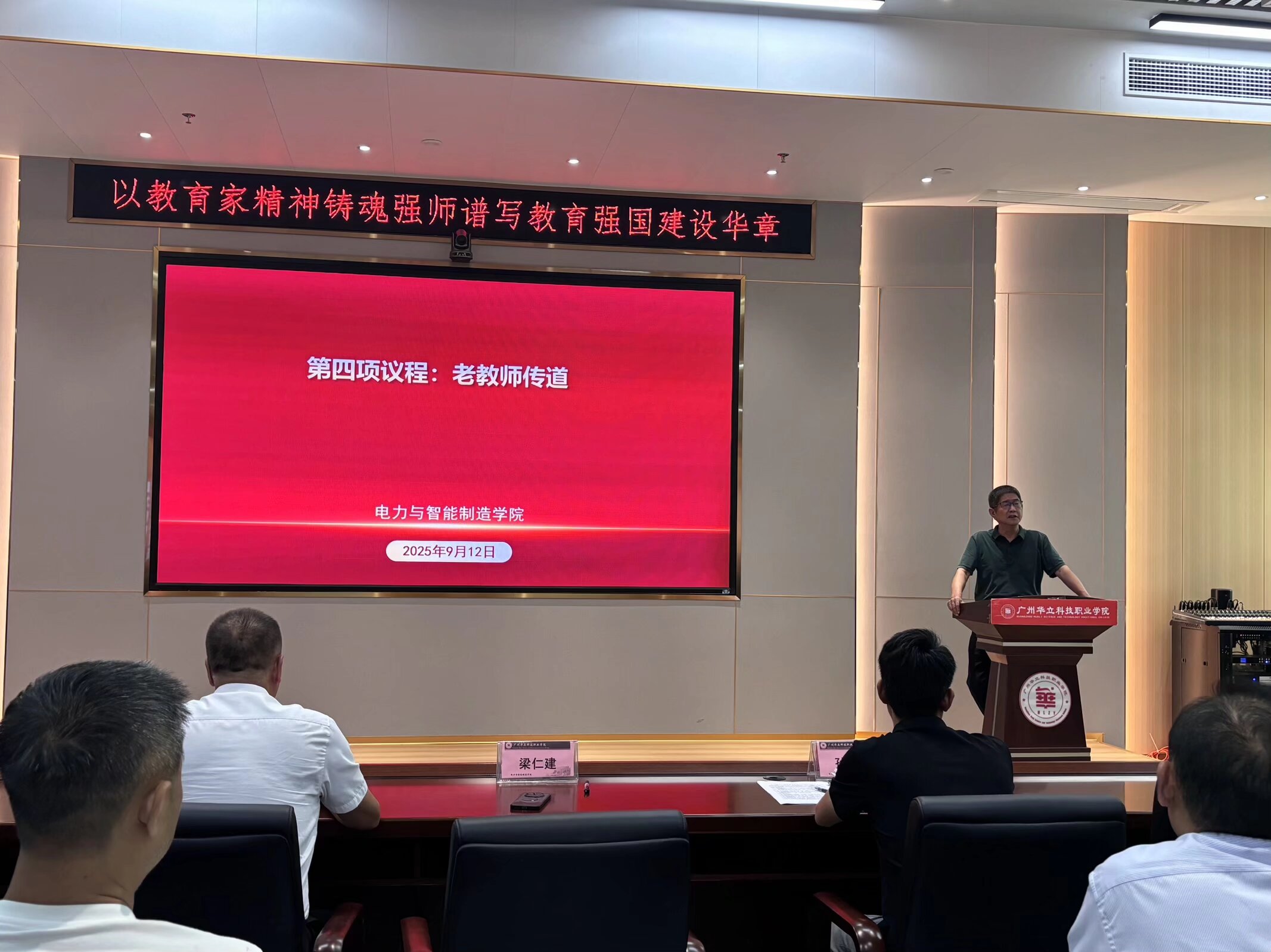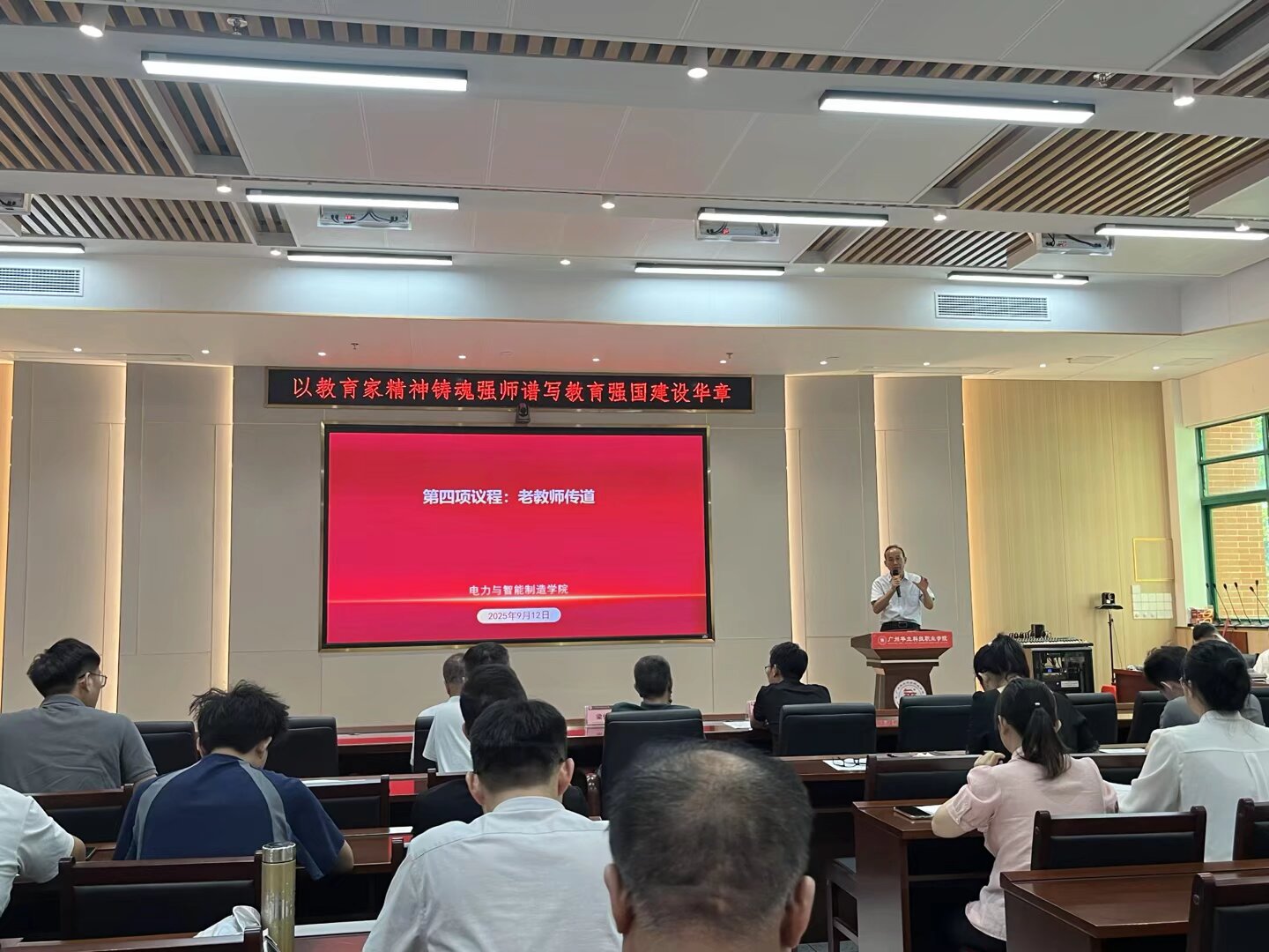 為了大力弘揚(yáng)教育家精神,譜寫教育強(qiáng)國建設(shè)華章,9月12日下午在圖書館104會(huì)議室,電力與智能制造學(xué)院開展了第三屆“師道?傳承”活動(dòng),活動(dòng)由學(xué)院黨總支書記褚玉峰教授主持。