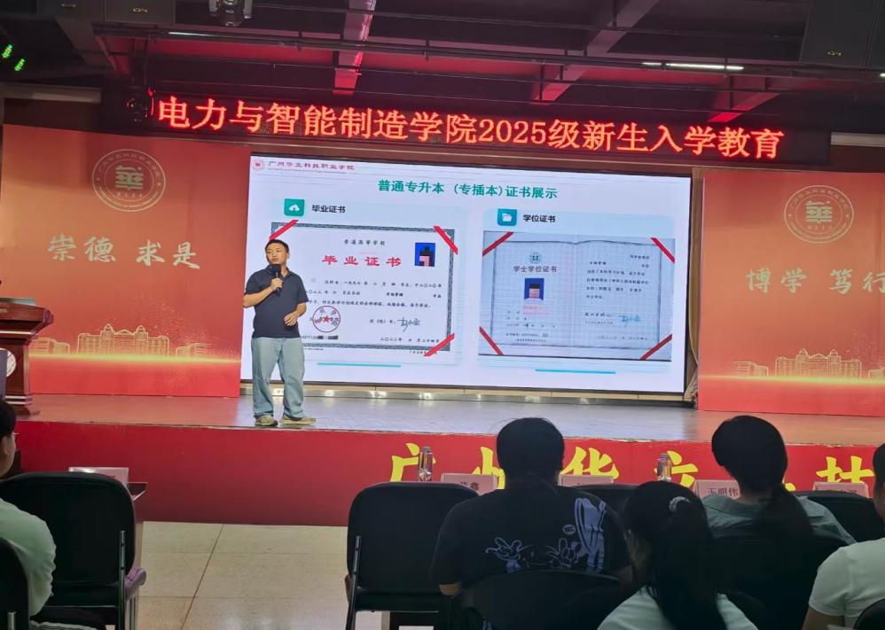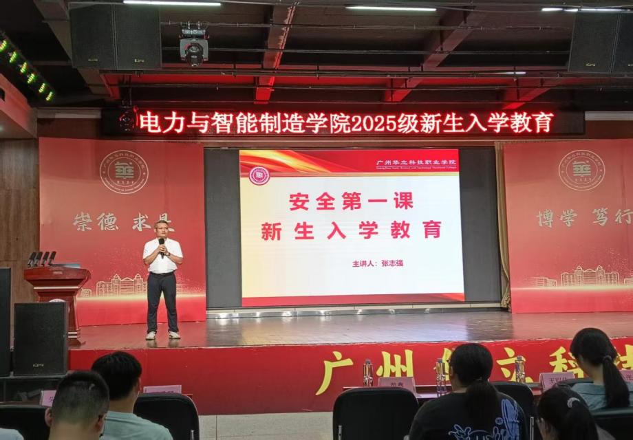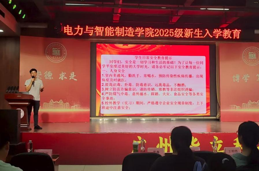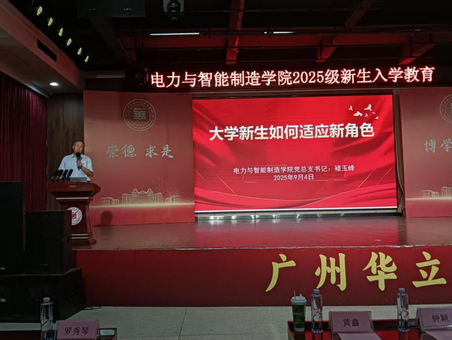 9月4日,電力與智能制造學院(廣州校區(qū))在圖書館八樓演播廳,分兩批次開展了2025級新生入學教育。蒞臨本次活動的領導與嘉賓有:學院黨總支書記褚玉峰,學院黨總支專職副書記、學管主任鄭理,學院團委書記王明偉,學校保衛(wèi)處張志強,評建辦薛玉梅,醫(yī)務室聶金源,圖書館王榮娟,培訓學院林香壁及學院學生輔導員等。