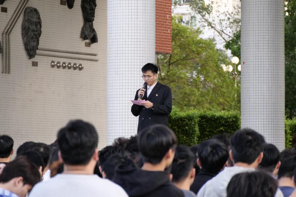 升旗儀式結束后,學院黨總支書記褚玉峰以“守交通平安防線,筑青春成長根基”為主題,進行了國旗下講話。