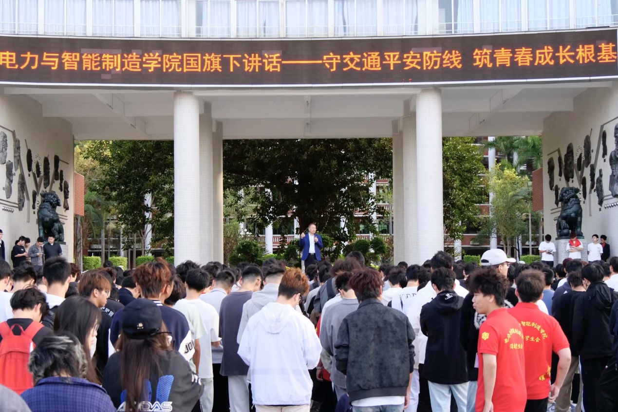 2025年11月10日清晨,電力與智能制造學院在綜合樓廣場舉行盛大的升國旗儀式,學院學管主任鄭理廣主持,學院黨總支書記褚玉峰、全體輔導員及全體同學們參加了升旗儀式。