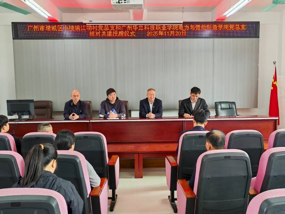 為推動高校智力資源與鄉(xiāng)村發(fā)展需求精準對接,探索黨建賦能鄉(xiāng)村振興新路徑。11月20日,電力與智能制造學院與廣州市增城區(qū)小樓鎮(zhèn)江坳村,在江坳村村委會舉行黨總支共建授牌儀式,開啟校村結對共建新篇章。