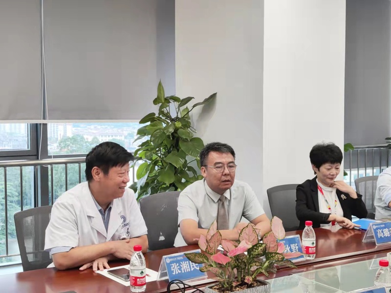 寇秋野黨委書記介紹了前海人壽(廣州)總醫(yī)院的發(fā)展情況及未來規(guī)劃,對醫(yī)校搭建合作平臺分享了看法,希望雙方加強合作。張湘明教授對搭建校企合作平臺進(jìn)行了必要的細(xì)節(jié)性的補充,并就場地、專家?guī)臁㈥P(guān)聯(lián)專業(yè)和優(yōu)勢進(jìn)行深入的講解。