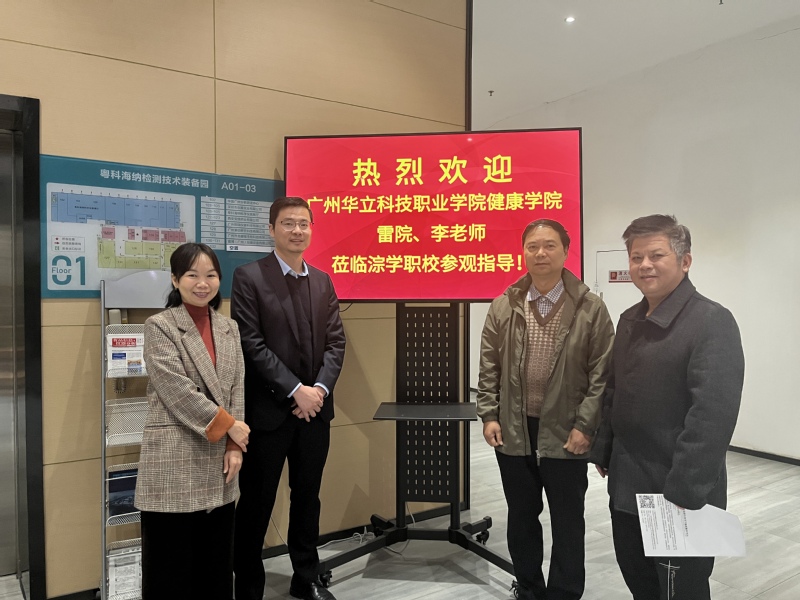 2022年1月13日,廣州華立科技職業(yè)學(xué)院健康學(xué)院院長(zhǎng)雷毅雄教授、校外教學(xué)副主任李景德一行前往廣州淙學(xué)檢測(cè)企業(yè)管理有限公司洽談培訓(xùn)項(xiàng)目。