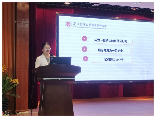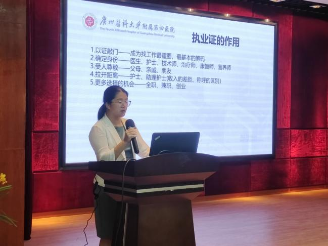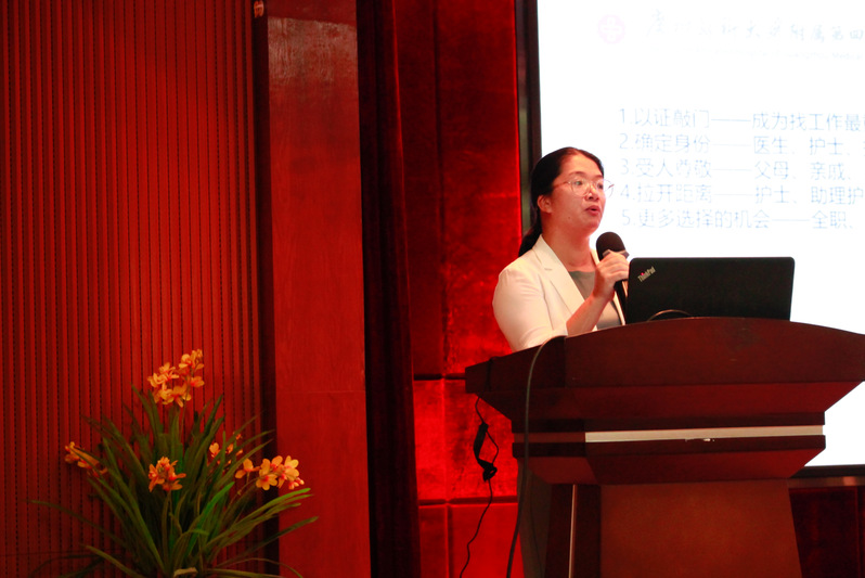 陳彩青副主任護師主要以自身的工作經(jīng)歷和晉升的經(jīng)歷啟發(fā)同學們。