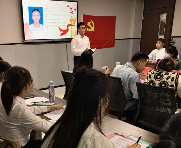 會議開始前,劉偉鑫同志帶領(lǐng)大家進行第一議題學習。鄭潔儀同志首先向各參會人員報告了出席本次會議的人員情況和會議程序,隨后,全體成員起立奏唱國歌,在雄渾莊嚴的旋律中,大會正式開始。緊接著,發(fā)展對象依次向黨組織匯報一年考察期內(nèi)的個人學習成長情況,并表明入黨動機和入黨態(tài)度。發(fā)展對象們表示在過去一年里自身的黨性修養(yǎng)以及學習能力、工作能力提升了很多,雖然自身尚存在不足和缺點,但一定會以黨員的標準嚴格地要求自我,不僅要從思想上入黨,更要從行動上入黨。