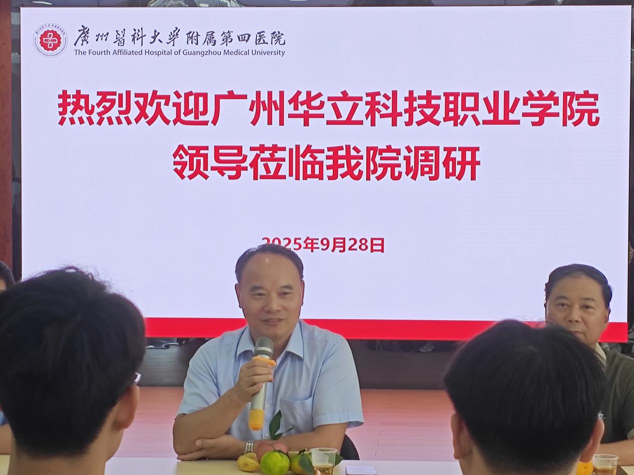 在國(guó)慶、中秋雙節(jié)來(lái)臨之際,2025年9月28日下午,我校廖俊杰校長(zhǎng)、教務(wù)處孫麗英處長(zhǎng)、實(shí)踐教學(xué)科韋建林科長(zhǎng)、健康學(xué)院雷毅雄院長(zhǎng)、李國(guó)良副院長(zhǎng)、行政主任梁瑞云、實(shí)習(xí)指導(dǎo)老師鄧香華、楊鵬一行赴廣州醫(yī)科大學(xué)附屬第四醫(yī)院訪企拓崗,給健康學(xué)院2023級(jí)在該醫(yī)院進(jìn)行臨床實(shí)習(xí)的華立學(xué)子們送去節(jié)日的關(guān)懷。廣州醫(yī)科大學(xué)附屬第四醫(yī)院郭建軍副院長(zhǎng),科教科劉志毅副科長(zhǎng)、陳彩青科護(hù)長(zhǎng),張琴口腔科主任等院領(lǐng)導(dǎo)熱情參與了中秋慰問(wèn)活動(dòng)。