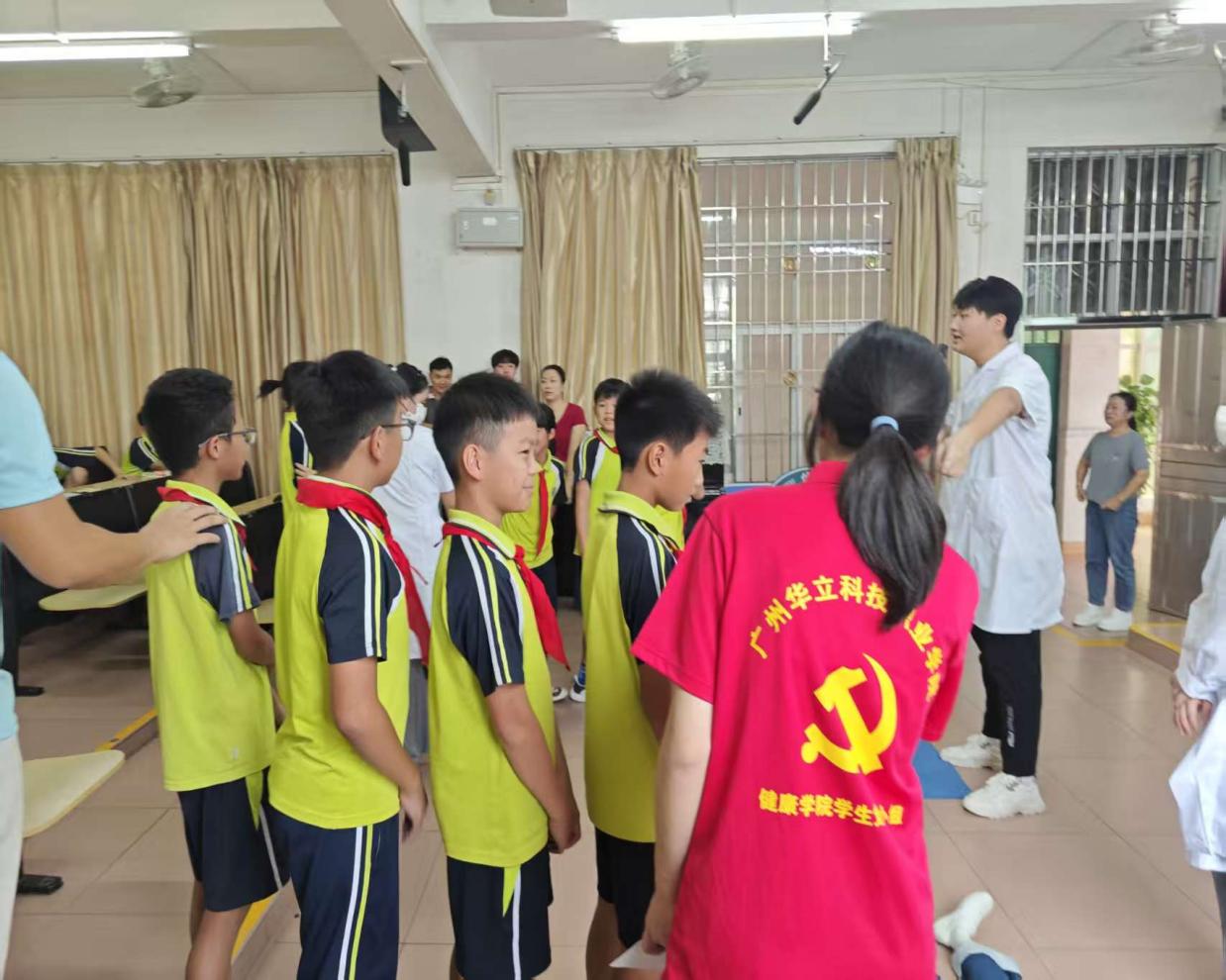 2025年10月13日,廣州華立科技職業(yè)學院健康學院以“一院一品牌”特色黨建活動為引領(lǐng),組織教師黨員以及黨建小組干部代表,攜手團委學生會干部代表,奔赴增城區(qū)某小學,開展了一場以“守護安全,‘救’在身邊”為主題的急救知識普及公益活動?;顒硬捎孟到y(tǒng)講解、技能演示與互動實踐相結(jié)合的方式,為小學生們呈上了一堂生動且實用的安全教育課。