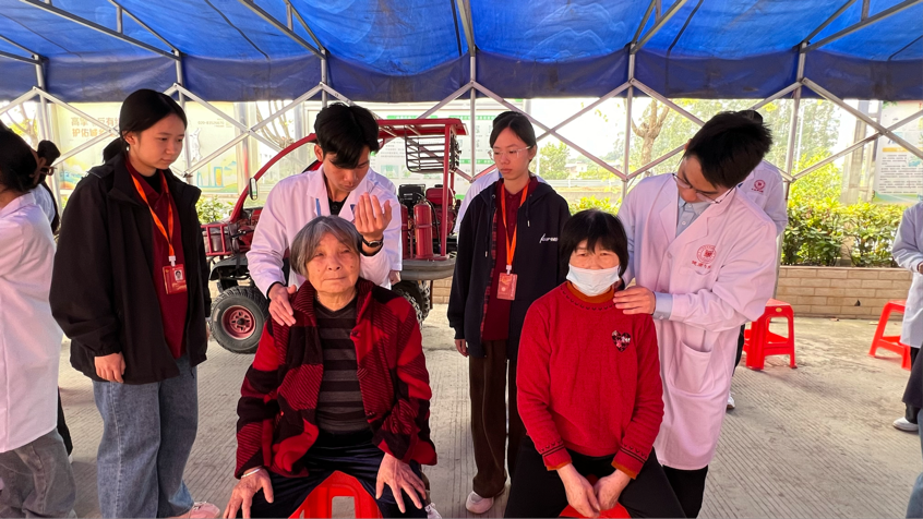 服務(wù)過程中,學生志愿者們始終恪守“不診斷、不開方”的專業(yè)原則,遇到疑問及時向帶隊老師請教,確保每一項服務(wù)都安全規(guī)范。秩序接待組的同學耐心安撫等候的老人,主動幫忙搬椅子、遞溫水;宣傳記錄組的同學拿著相機穿梭現(xiàn)場,定格下師生協(xié)作服務(wù)、村民笑容滿面的暖心瞬間;后勤保障組的同學則時刻關(guān)注物資補給,保持場地整潔,讓整個義診活動高效又溫馨。