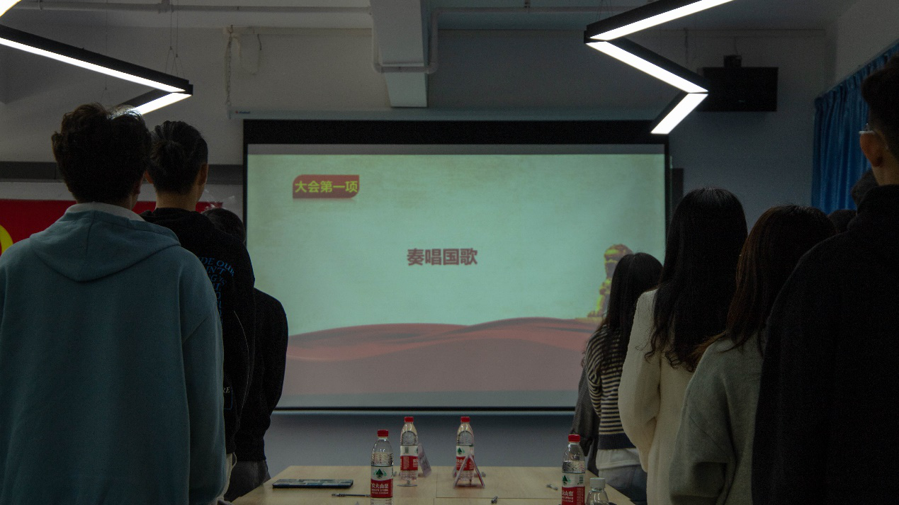 會(huì)議開始,全體人員奏唱國歌。緊接著,鄭理廣同志致辭,他對參加本次會(huì)議的六名預(yù)備黨員表示祝賀,并且強(qiáng)調(diào)即將轉(zhuǎn)正的同志都應(yīng)該以一名合格黨員的標(biāo)準(zhǔn)要求自己、警醒自己,做到嚴(yán)于律己,做好先鋒模范作用。