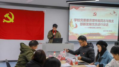 為深入了解2020年下半年發(fā)展黨員的思想動(dòng)態(tài)、入黨信念及實(shí)際表現(xiàn),計(jì)算機(jī)信息工程學(xué)院黨支部于2021年1月8日下午14:20在西三教學(xué)樓501課室,召開(kāi)學(xué)校黨委委員曾祥彪與我支部新發(fā)展黨員進(jìn)行談話會(huì)議。參于本次會(huì)儀人員有:黨委委員曾祥彪同志,計(jì)算機(jī)信息工程學(xué)院黨支部副書(shū)記鄭理廣同志,黃沛儀同志以及2020年下半年發(fā)展黨員。