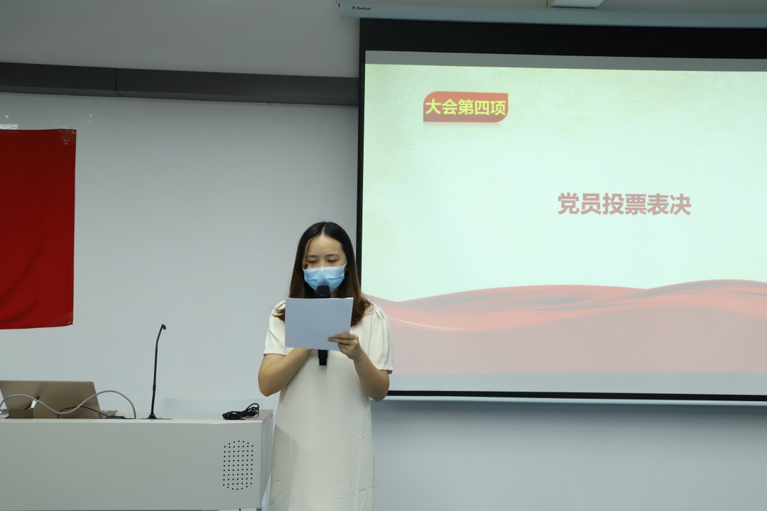 隨后計(jì)算機(jī)黨支部全體正式黨員老師的投票表決。由湯亭同志公布投票結(jié)果,同意21名預(yù)備黨員轉(zhuǎn)正為正式黨員。