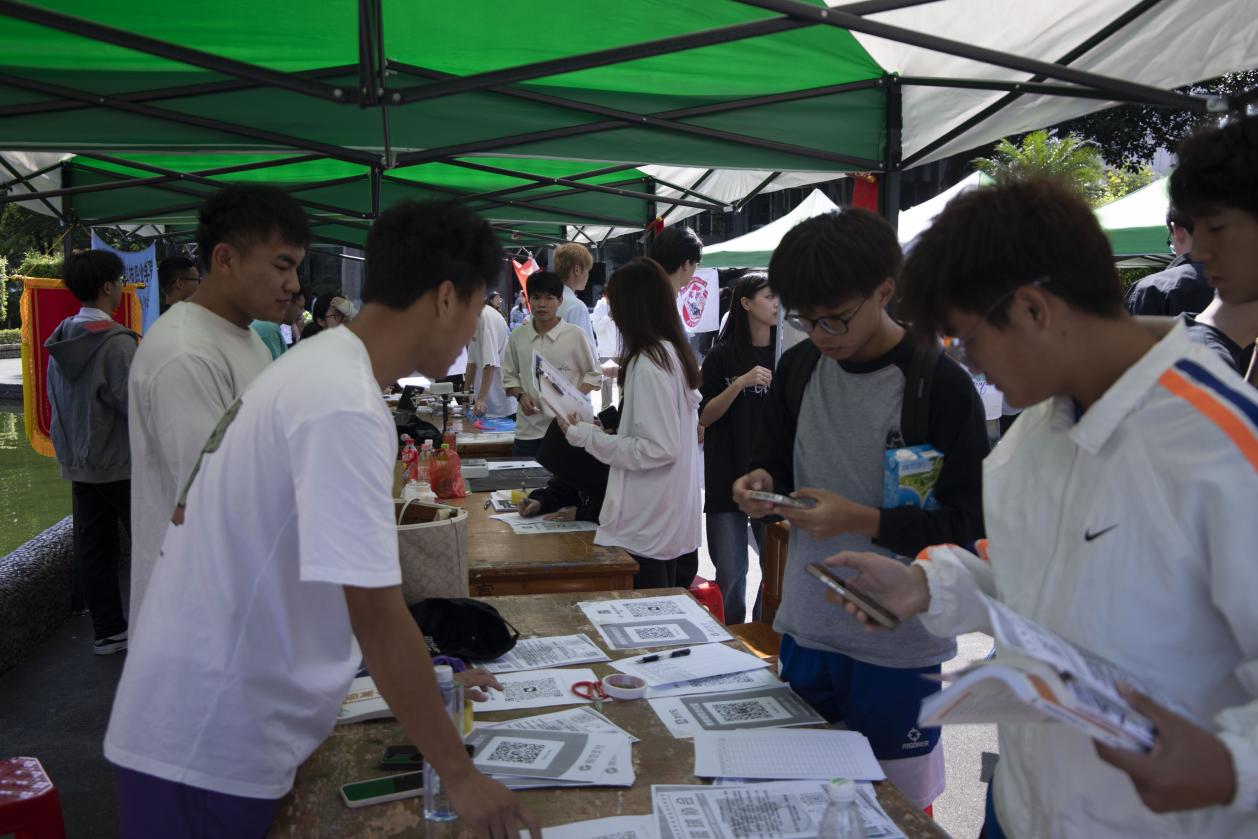 伴隨著下課鈴聲的響起,同學們陸陸續(xù)續(xù)的涌入,使得計算機信息工程學院團委學生會的招新攤位熱鬧了起來,在面對學弟學妹們的各種疑難疑惑中,學長學姐們也非常的有耐心為他們講解和介紹,并對每一位大一新生做好報名登記。