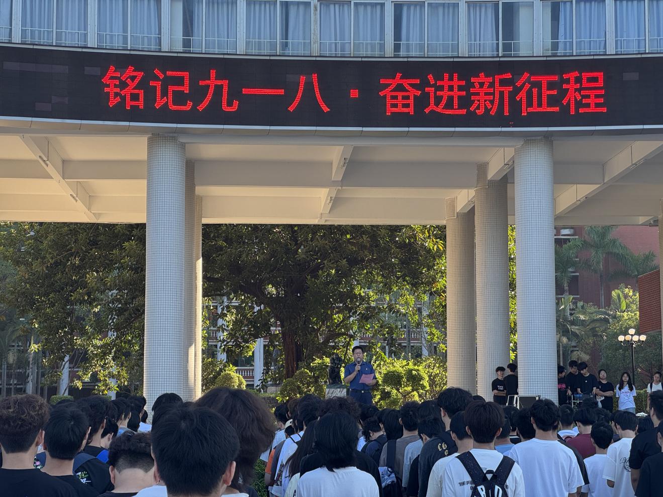 升旗禮畢,計算機信息工程學(xué)院黨總支書記宋海泉副院長發(fā)表國旗下講話講話。他回顧“九一八”事變的苦難歷史,強調(diào)民族復(fù)興關(guān)鍵節(jié)點上師生的時代使命,同時寄語教師堅守立德樹人、潛心育人,勉勵同學(xué)珍惜韶華、勤學(xué)篤行。