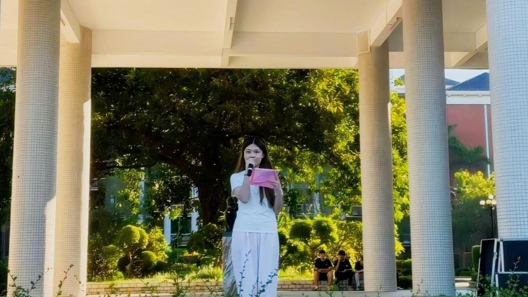 來自25計應(yīng)2班的新生代表林琮迪現(xiàn)場提議,新時代青年要銘記歷史,在課堂中扎實學(xué)知識、在生活中攜手共拼搏,將個人成長融入國家發(fā)展,以實干守護和平、用奮斗為民族復(fù)興貢獻力量。