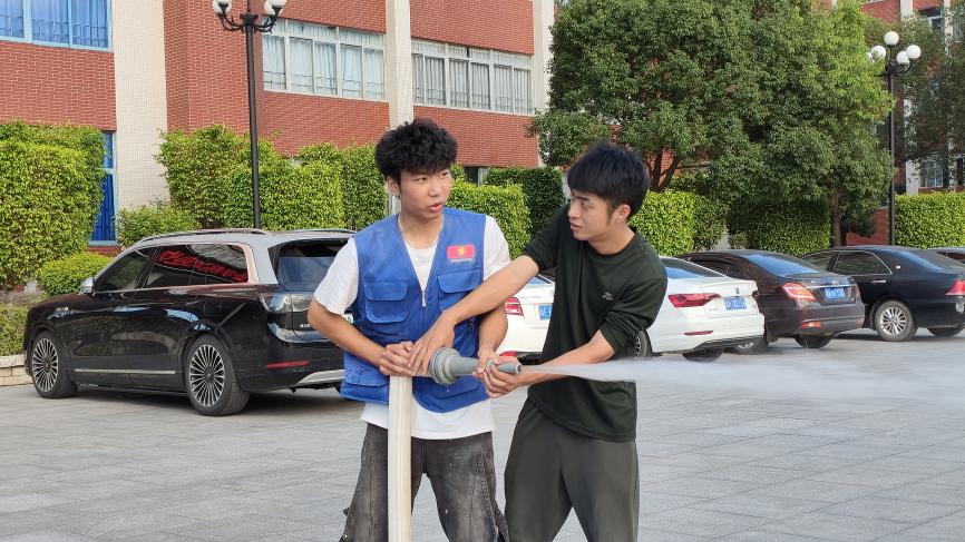 活動(dòng)最后,利用消防水槍的講解和實(shí)操體驗(yàn),讓學(xué)生真切的感受消防水槍的使用同時(shí)也對(duì)消防安全演練場(chǎng)地地面進(jìn)行打掃,水槍也是消防中非常關(guān)鍵,也是非常有效的措施。