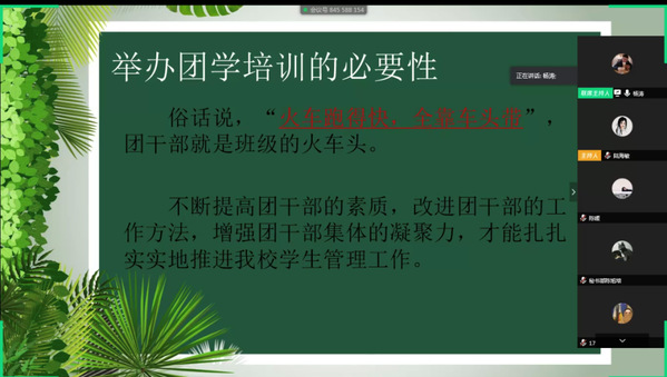 為了不斷提高團(tuán)干部的素質(zhì),改進(jìn)團(tuán)干部的工作方法,增強(qiáng)團(tuán)干部集體凝聚力。管理學(xué)院、國(guó)貿(mào)學(xué)院于2020年4月18日在騰訊會(huì)議軟件進(jìn)行線上授課。