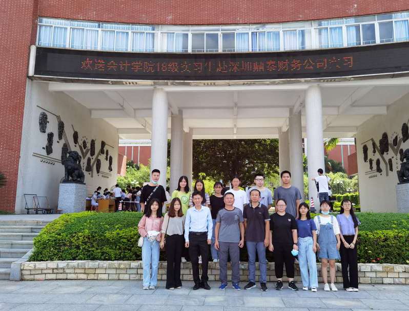 2020年7月12日上午,會計學(xué)院李哲院長和校外教學(xué)主任黃冠霖老師在校園綜合樓前送會計學(xué)院10名18級學(xué)生,踏上去往深圳鼎泰財務(wù)顧問有限公司實(shí)習(xí)的征程。