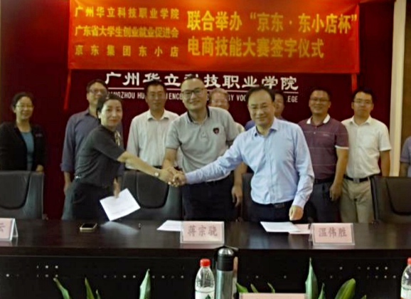 隨后,在熱烈的氣氛中,我校與京東集團東小店了《大學(xué)生校外實踐教學(xué)基地協(xié)議書》,與廣東省大學(xué)生創(chuàng)業(yè)就業(yè)促進會、京東集團東小店簽訂了政校企三方聯(lián)合舉辦“京東·東小店杯”電商技能大賽協(xié)議書。