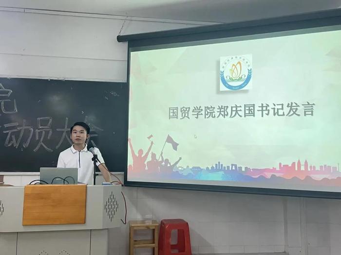 v 會議第二項,由國貿(mào)學(xué)院團(tuán)總支書記鄭慶國老師發(fā)言。鄭慶國書記主要為我們講述了此次迎新工作的詳細(xì)安排,為國貿(mào)學(xué)院的迎新工作做出了指引,也讓國貿(mào)學(xué)院團(tuán)總支學(xué)生會全體負(fù)責(zé)人、輔導(dǎo)員助理與入黨積極分子們清楚自己的工作與責(zé)任。大會上著重強(qiáng)調(diào)的內(nèi)容有三點: