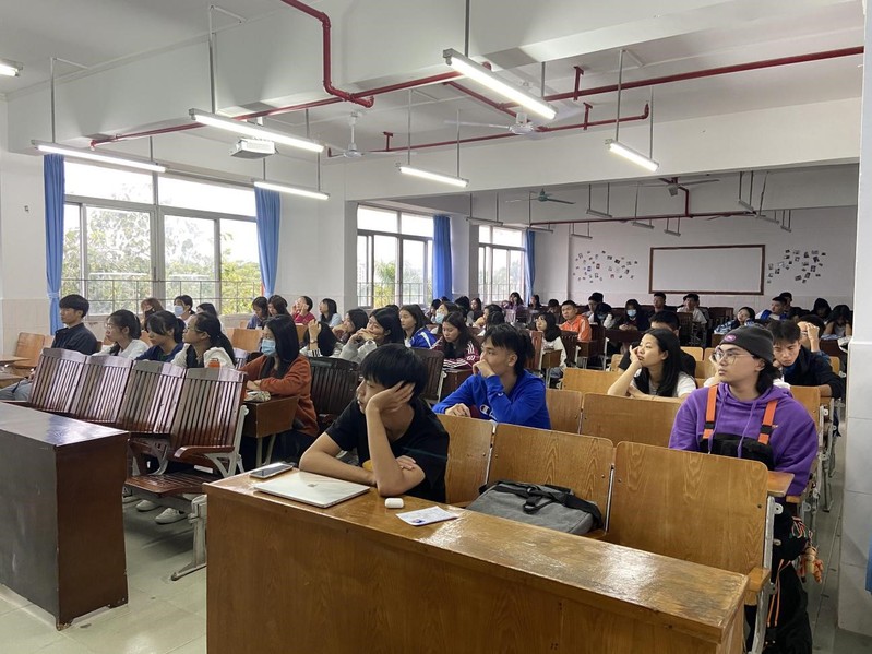 國家獎(jiǎng)學(xué)金獲得者賴妮思同學(xué),還向同學(xué)們自述了他們的獲獎(jiǎng)歷程及對大學(xué)生活的感悟,并把自己的經(jīng)驗(yàn)和心得傳授給我們,主要體現(xiàn)在學(xué)習(xí)以及出勤等方面?,F(xiàn)場氣氛活躍,同學(xué)們積極提問,獎(jiǎng)學(xué)金獲得者賴妮思同學(xué)耐心解答問題。