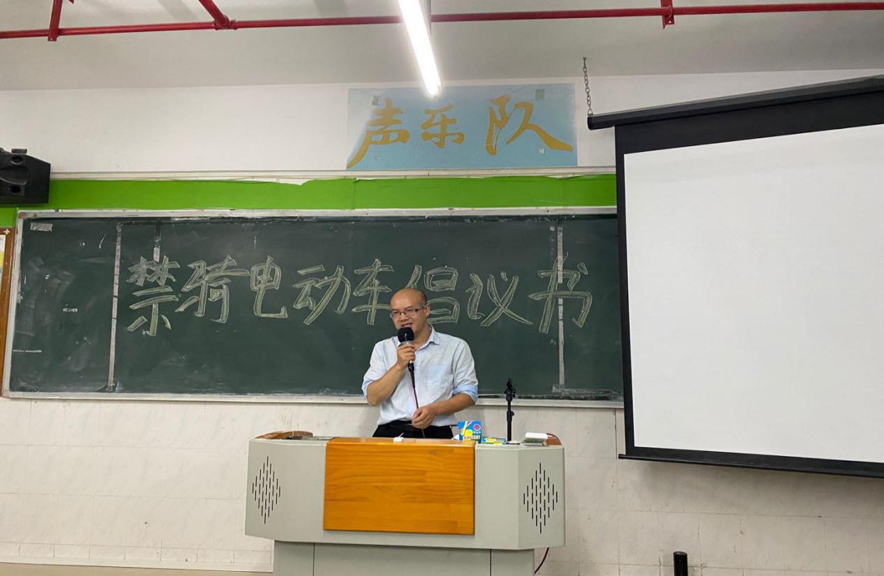 接著,廖后發(fā)老師給同學們科普了騎電動車存在的不安全隱患:一是學校附近車流量多,不安全;二是擔心同學們對電動車的駕駛不當;三是同學們年紀不大,沒有駕駛經(jīng)驗,容易發(fā)生交通事故。