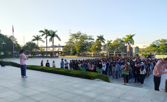 2020年10月26日清晨,會計學院的同學們在綜合樓廣場舉行了升旗儀式,同學們以飽滿的精神狀態(tài),排著整齊的隊伍等待升旗儀式的開始。