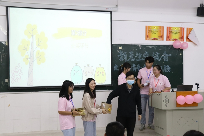 王冠飛輔導(dǎo)員進行抽獎并頒發(fā)獎品