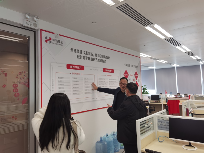 陳少強(qiáng)總經(jīng)理向李哲院長詳細(xì)介紹了翰智集團(tuán)的概況與發(fā)展歷程。翰智集團(tuán)成立于2004年,是業(yè)內(nèi)領(lǐng)先的數(shù)字化綜合服務(wù)商,提供智能數(shù)字化的軟件產(chǎn)品,解決方案和專業(yè)服務(wù)。翰智在數(shù)字化領(lǐng)域積極探索創(chuàng)新應(yīng)用,基于RPA、AI、大數(shù)據(jù)等創(chuàng)新應(yīng)用技術(shù),為客戶提供智慧財(cái)稅、業(yè)財(cái)稅共享、RPA智能機(jī)器人、智慧教育等一體化解決方案。致力于融合創(chuàng)新技術(shù)促進(jìn)社會生產(chǎn)力的提高,為企業(yè)提供智能的數(shù)字化平臺,實(shí)現(xiàn)企業(yè)商業(yè)模式升級。