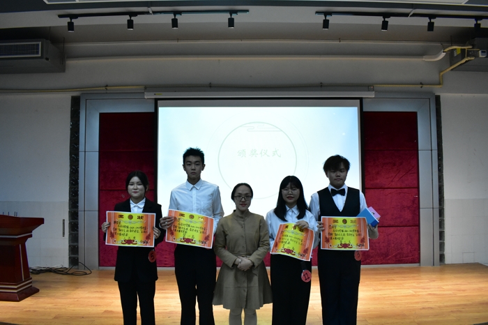 通過三輪比拼,根據(jù)評委評分,得出比賽結(jié)果,由主持人公布:第一名:陳哲、第二名:梁彥、第三名:李澤宇、人氣獎:賴瑩瑩,并由會計學院團總支書記陳美欣老師為他們頒獎。