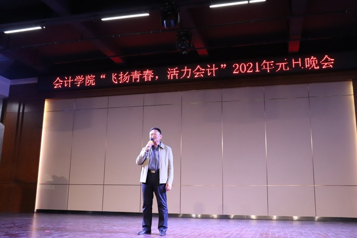 2020年12月22日晚,會計學院在圖書館八樓舉辦了“飛揚青春,活力會計”2021年元旦晚會,蒞臨的領導和嘉賓有:會計學院院長李哲教授、會計學院院長助理楊玲老師、會計學院行政副主任李月老師、會計學院校外教學副主任黃冠霖老師、會計學院冷長恒老師、歐陽偉籌老師、陳漢成老師、王赟老師、馬瑞華老師,國貿(mào)學院團總支書記鄭慶國老師、計算機學院團總支書記郭麗純老師、電力學院團總支書記鐘穎老師、藝傳學院團總支書記梁安達老師、健康學院團總支書記陸海敏老師、會計學院團總支書記陳美欣老師,會計學院輔導員王冠飛老師、陳湛通老師,會計學院實習輔導員曾文樑老師、劉嘉楣老師,會計學院辦公室實習生施思敏老師以及往屆學生會成員和各兄弟學院和組織代表。