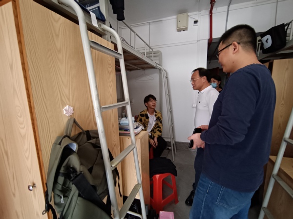 探訪期間,我院領(lǐng)導(dǎo)的關(guān)懷之情溢于言表,詢問同學(xué)們是否住得習(xí)慣,將同學(xué)們的要求和建議一一登記,以便盡快切實(shí)解決學(xué)生的問題,叮囑同學(xué)們注意人身財產(chǎn)安全,放好貴重物品,并語重心長的對同學(xué)們說要盡快調(diào)整好心態(tài)迎接新學(xué)期,以學(xué)習(xí)為重,積極進(jìn)取,不負(fù)青春韶華。